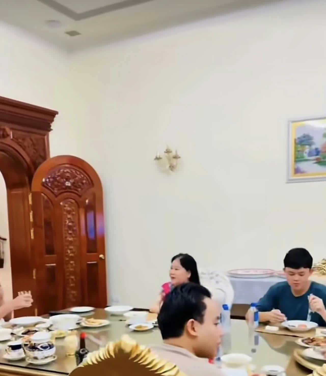 看了柬埔寨亲王洪森全家人吃饭的餐厅,有五个特点: 1、餐厅面积不小。餐厅至少160平方米。相当于一个小单位的食堂。 2、桌子装饰高档。主要是桌子和椅子都是高档红木材料,表面还镀了一层金。 3、饭菜属一般般。没有看到山珍海味等高档佳肴,也就是都是普通饭菜,绿色蔬菜几乎没有。 4、座位非常讲究。洪森亲王和夫人坐的椅子颜色一样(浅白色),其他家庭成员的椅子一个样(浅金色)。但夫人不能与洪森并排坐一起。 5、用餐比较随意。主食、副食、水果、饮料,大人孩子各取所需。