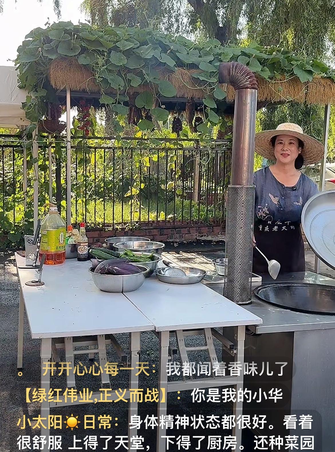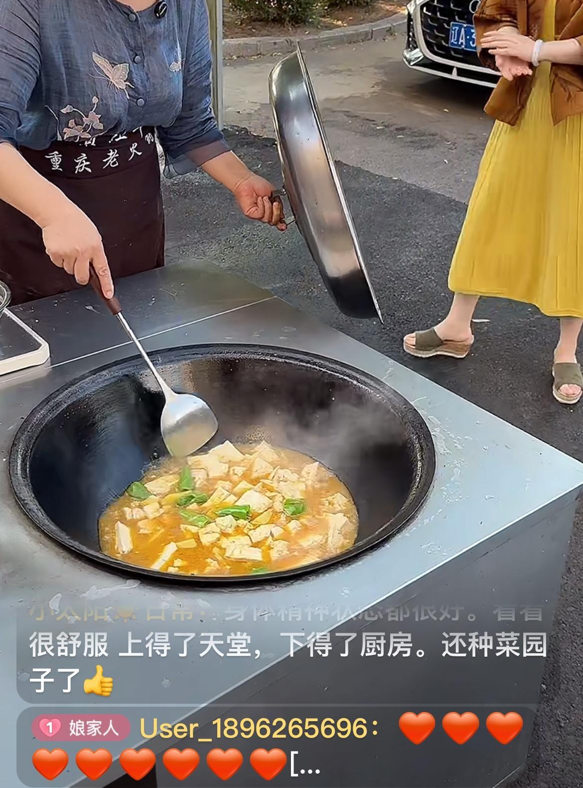 7月22日下午,二人转演员王小华出现在直播间,王小华接着在家里院子里开始了现场直播,锅里炖的豆腐,桌子上放的黄瓜茄子,主播一边和网友聊着,一边做饭,空间还去摘了一趟生菜,东北人有生菜蘸大酱的习惯!朋友们说:小华姐直播了一夜,我们要走,小华姐说不要走,我得做饭给你们吃!很多网友表示也很想去,看着这样的农家小院,这样的大锅炖,真是挺馋人的! 王小华说:这个真的很好吃,别烫着你们昂!来吧,欢迎各地的家人们! 王小华就是这样,人很实在,做饭时间里有朋友打电话要给她送水果,有要来送烧柴的,人缘很好的!