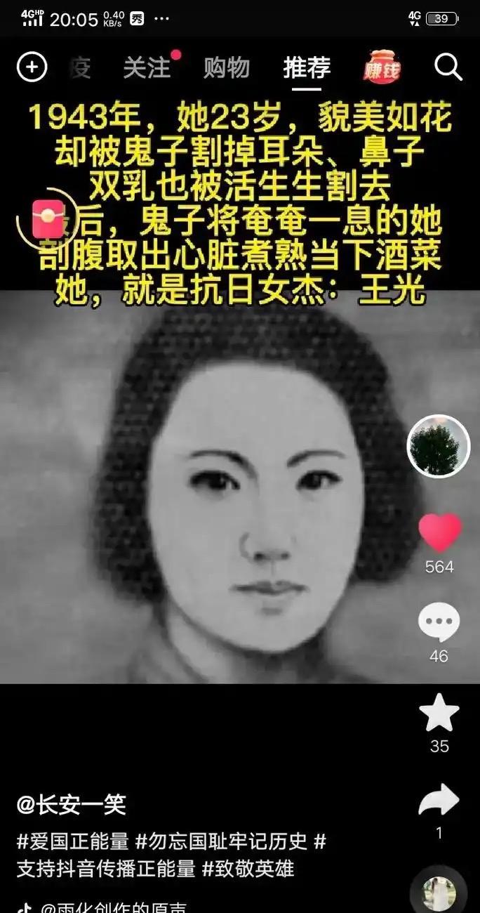 1943年,王光被日军施暴,惨叫声持续了几个小时,直到第二天天一亮,村民连忙赶来收尸,但就在赶到王光身边的时候,有人碰了碰她,一个东西突然掉了出来,大家看到的那一瞬间都哭了……那东西滚在土里,带着血,小小的,还没长全,是个成形的胎儿。 前几天她还笑着跟邻居说,等娃生下来,要做个小木马给娃骑。照片里的王光烈士,23岁的年纪,腹中还揣着未出世的孩子,却在1943年的日军暴行里,为掩护百姓流尽最后一滴血。 那一年,王光所在的村子是日军的扫荡目标。鬼子们像一群疯狗,到处烧杀抢掠。王光是个心地善良的姑娘,平日里总是乐呵呵的,谁家有困难,她都会主动帮忙。那天,鬼子进了村,村民们惊慌失措,四处逃散。王光本可以跟着大家一起躲进山里,但她看到村里的老人和孩子跑得慢,就留下来帮忙。 她把几个小孩藏在柴草堆里,又把几个老人领到自家的地窖里。鬼子在村里搜查的时候,发现了王光。她拼命地保护着那些孩子,可还是被鬼子抓住了。鬼子们像野兽一样折磨她,她疼得撕心裂肺地喊,但始终没有屈服,没有说出藏人的地方。第二天,村民们听到动静,赶忙跑过来。他们看到王光躺在地上,身上满是伤痕。有人忍不住碰了碰她,没想到那个还没出生的孩子就掉了出来。 大家看着那个小小的、带着血的胎儿,眼泪止不住地流。王光前几天还在跟邻居说,等孩子生下来,要给他做个木马,让他骑着玩。可现在,她再也看不到孩子出生了。 王光的故事让我心里特别难受。她那么年轻,本该有美好的未来,可却在那样的暴行中失去了生命,连肚子里的孩子都没能保住。 这不仅仅是她一个人的悲剧,更是整个民族的伤痛。那些侵略者,他们没有人性,把别人的幸福毁得一干二净。王光用自己的生命保护了村民,她是个英雄。我们不能忘记那段历史,不能让这样的悲剧再发生。我们要珍惜现在的和平生活,更要记住那些为了和平献出生命的烈士们。 各位读者你们怎么看?欢迎在评论区讨论。