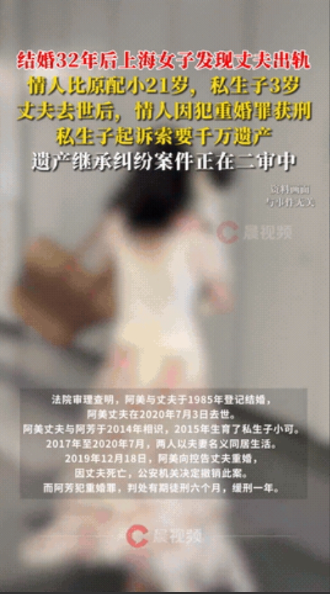 “没天理了!”上海,大妈意外发现丈夫竟然出轨了比自己还年轻21岁的第三者,甚至私生子都已经3岁了!大妈一气之下把丈夫与第三者告上法庭,期间,丈夫猝然离世,案子撤销,法院最后判处第三者触犯重婚罪,缓刑1年!并返还丈夫生前赠予的100万财产!岂料,第三者以私生子名义,起诉要求分割千万遗产,最后法院判决让大妈大跌眼镜! 1985年,上海的张梅怀着对婚姻的憧憬,和丈夫领了结婚证。 那会儿的日子过得简单,丈夫在外打拼事业,张梅在家操持家务、照顾老人孩子,夫妻俩一起风风雨雨走过了三十多年。 街坊邻居都觉得这是对模范夫妻,谁也没想到,这份看似稳固的婚姻早就藏着裂痕。 大概从2014年开始,张梅的丈夫认识了比她小21岁的李芳。 年轻的李芳让丈夫动了心,他渐渐忘了家里还有个陪他白手起家的妻子。 2015年,李芳生下了一个男孩,并取名“小可”。 到了2017年,丈夫干脆搬去和李芳同住,对外还以夫妻相称,周围的人不知情,只当是老夫少妻过日子。 这边张梅还蒙在鼓里,只觉得丈夫回家的次数越来越少,总说工作忙。 直到听到一些风言风语,她才开始留意丈夫的行踪,这一查就查出了晴天霹雳,结婚32年的丈夫不仅出轨,和第三者的孩子都已经3岁了! 2019年12月,张梅咽不下这口气,一纸诉状把丈夫和李芳告上了法庭,告他们重婚。 可官司还没审完,意外就来了。 2020年7月,张梅的丈夫突然去世,按照法律规定,被告死亡后重婚案只能撤销。 但李芳的责任跑不掉,法院最后认定她明知对方有配偶还以夫妻名义同居,构成重婚罪,判了6个月有期徒刑,缓刑1年。 解决了重婚的事,财产问题又冒了出来。 张梅发现丈夫生前偷偷给李芳和小可转了100多万,她再次起诉,法院很快有了判决:这些钱属于夫妻共同财产,丈夫无权单方面赠与,李芳必须把100多万还回来。 本以为这事能告一段落,没想到更大的麻烦在后面。 丈夫去世后留下了不少遗产,房产、商铺折算下来有1000万,还有车子、股票这些资产。 2021年,3岁的小可在监护人的帮助下把张梅告上了法庭,要求分割这些遗产。 更关键的是,小可一方拿出了丈夫生前立的遗嘱,遗嘱里明确说要把千万资产留给小可。 这起遗产案一审后双方都不服,现在还卡在二审阶段。 其实类似的事不止上海这一起。 内蒙古赤峰也曾有过类似案例,梁某的丈夫婚内给第三者转了53万,丈夫去世后梁某发现了转账记录,起诉后法院也判决第三者返还财产。 这背后的道理很简单,夫妻结婚后挣的钱是共同财产,一方不能瞒着另一半随便送给别人,这种赠与本身就不合规矩,法律肯定不支持。 不过打官司的时候,第三者往往不会轻易认账。 就像上海这案子,要是李芳辩解自己不知道对方已婚,法院会让她拿出证据,毕竟都以夫妻名义同居了,说不知情很难让人信服。 要是她说是丈夫借她的钱,那得拿出借条或者还款记录才行,拿不出来就只能按赠与算。 还有些第三者会说钱是给孩子的抚养费,但法律上抚养费得是合理数额,而且不能用夫妻共同财产来给,真要算抚养费也得另案处理。 从法律上来说,李芳因为重婚被判刑没什么争议,毕竟她明知道对方有妻子还一起过。 丈夫给她的100万被追回也合理,共同财产确实不能单方面处置。 但遗产分割这块就复杂了,法律白纸黑字写着,非婚生子女和婚生子女有一样的继承权,要是遗嘱是真的,小可确实能按遗嘱分遗产。 这就让人看出原配妻子和私生子的法律权益冲突了。 张梅陪丈夫过了32年,从苦日子一路熬过来,操持家务、养育孩子,可丈夫背叛后,她不仅要面对感情破裂,还要和丈夫的私生子争家产。 从情感上看,张梅三十年的付出换来这样的结果,确实让人觉得不公平,但从法律上,小可作为孩子,又确实有继承父亲遗产的权利。 更让张梅委屈的是,她觉得自己因为这些事身心都受了伤害,起诉要求李芳赔偿精神损失,结果法院驳回了。 这是因为法律上的精神损害赔偿得是人身权益真受了侵害才行,单纯因为感情背叛或者财产纠纷受伤,很难得到支持。 现在上海这起案子的二审还没结果,大家都在等着看最终判决。 但不管结果怎么样,这事儿都让人明白,婚姻里的忠诚不仅是感情上的事,还牵扯到财产和法律责任。 而法律在保护各方权益的时候,有时候确实会遇到情感和法理不好平衡的地方,就像张梅这三十年的付出,在法律条文面前,似乎一下子变得轻飘飘的,这大概就是最让人心寒的地方。