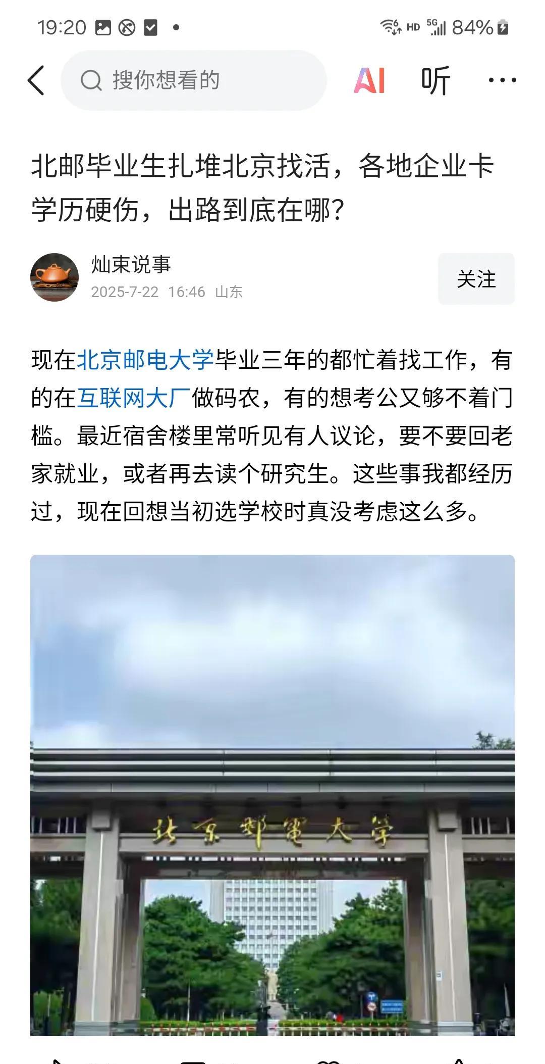 大叔我就是北邮毕业的,而且毕业快三十年了,各种工作都做过。我做过技术,也做过销售,也做投资人。我认为这个北邮学生说北邮说的很好,给师弟师妹们的建议也非常好。我就是一直建议大学生们从大一就开始实习,早点去跟着老师,甚至更好的学校比如清北的老师做项目。同时我也鼓励大家去出国深造,因为国内的大学,包括清北培养顶尖人才的能力还差点意思。