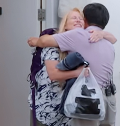 张踩铃的爸爸正在厨房做饭,婆婆温迪突然走进厨房,拉着自己的亲家开始跳舞,给张踩铃