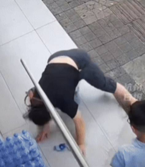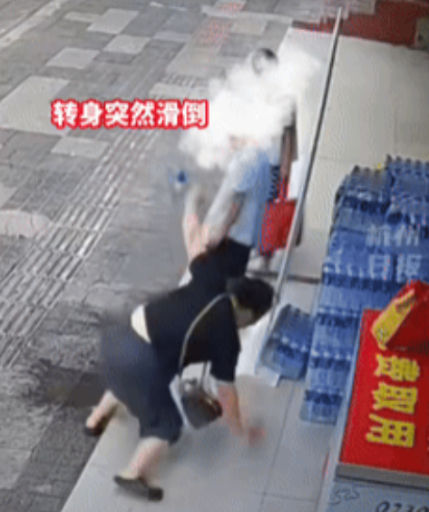 就在她冲完脚转身之际,脚下突然一滑,整个人狠狠地摔倒在地。这一幕,何尝不是一种“现世报”呢?