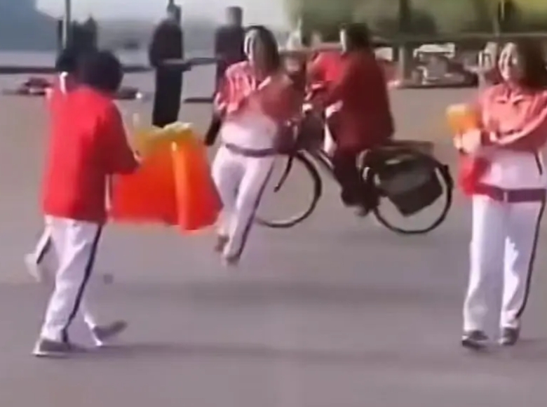暴走团遇上对手了,大妈见说不管用,骑车往人群里撞,吓得女队员撒腿就跑,旁边的大爷
