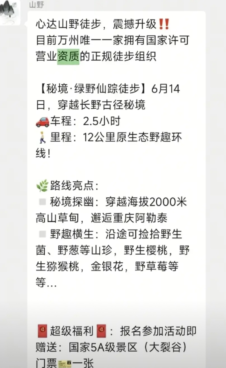 我以前就加入过一种“户外徒步群”,群主每天都会在里面组织一些群体户外徒步活动,自愿报名,但参加都是要交费。