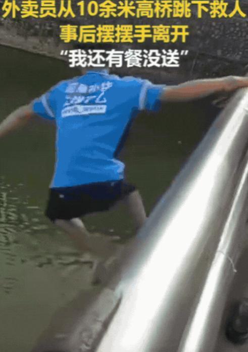 “上人民日报了!”广东茂名,50岁外卖员送餐经过大桥,突然跳下车,从10余米高桥跳下,迅速向水中间游去,原来是有人不慎落水,他将落水者救起之后,有人让他留下姓名和电话,可他却摆摆手离开:我还有餐没送。网友:湿漉漉的背影令人动容,为你点赞! 据人民日报7月21日报道,50多岁的外卖员老陈(化名)平时生活工作中就是一个非常善良朴实的人,他为了贴补家用,每天在外面跑外卖讨生活。 事发当天,外卖员老陈和平常一样,安安稳稳的骑着车,去指定的地方取餐品,然后马不停蹄的去送,在路上车筐里的餐盒随着骑行轻轻摇晃。他专注地盯着导航,盘算着送餐路线,心里想着别让顾客等太久。 可谁也没想到,一场惊心动魄的救援,即将在这座 10 余米高的桥上发生。 当老陈骑着车,路过一个桥面的时候,桥面上车来车往,老陈的电动车刚行驶到桥中间,他眼角的余光突然瞥见桥边有异样,几个人围着桥边,向下看着,脸上全是担忧和紧张。 老陈几乎是条件反射般,他猛地刹住车,想看发生了什么,老陈把电动车往路边一推,两步就冲到桥边护栏处。结果从别人口中得知,有人落水了!老陈听到这一消息,心里先是一惊,然后立马顾不上反应,他心里只想着赶紧救人! 于是他衣服都没脱,他双手抓住护栏,纵身一跃,直接从十米高的桥上,直直的跳了下来。此时,桥下的水面上,一个身影正在挣扎,汹涌的江水根本让那人没有力气反驳。 老陈入水的瞬间,冰凉的水瞬间浸透他的衣裳,可他顾不上这些,迅速调整身体,朝着水中间拼命游去。落水者在水里拼命扑腾,力气正一点点被水流抽走。老陈游到跟前,一把抓住对方的胳膊,使劲往岸边拖。 他年纪不算小,加上从高桥跳下耗费了不少体力,每游一下都要憋着劲,可救人的信念撑着他,动作一刻没停。周围渐渐有人发现了这边的动静,桥上的车主纷纷停车,有人拿出手机报警,可老陈没空抬头,只顾着拖着落水者往岸边靠。 好不容易到了浅水区,老陈拖着浑身湿透的身子,和落水者一起上了岸。此时,落水者已经缓过些神,意识到是被人救了,嘴里嘟囔着感谢,可老陈没多停留。他想起车筐里还有没送的餐,顾客说不定正等着,于是朝着围观的人摆了摆手,转身就往电动车方向走。 有人喊住他,想留下他的姓名和电话,好让被救者家人感谢,可老陈只是摆了摆手,声音带着点喘的说,他还有餐没送,不用了。 说完,骑上车,消失在车流里,只留下他湿漉漉的背影。 这场救援,被桥上的路人用手机记录了下来,视频很快在网上传开。网友们刷到视频时,纷纷被老陈的举动打动。有人评论说:“普通人的勇敢最动人,他跳水的那一刻,根本没想自己危险,满脑子都是救人,救完人连功劳都不想要,转身就去送餐,这才是真正的英雄!” 还有人感慨:“生活里的英雄,往往就是这样默默出现,又默默离开,他的背影虽然湿漉漉的,却让我们看到了最耀眼的光。” 对于这件事,大家有什么想说的呢?欢迎在评论区分享。 信息来源:人民日报 报道于2025年7月21日