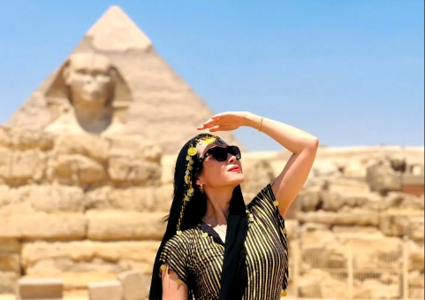 不愧是国际巨星,跑到埃及了都比埃及艳后还美丽,感觉胸都变大了,身材越来越完美了。