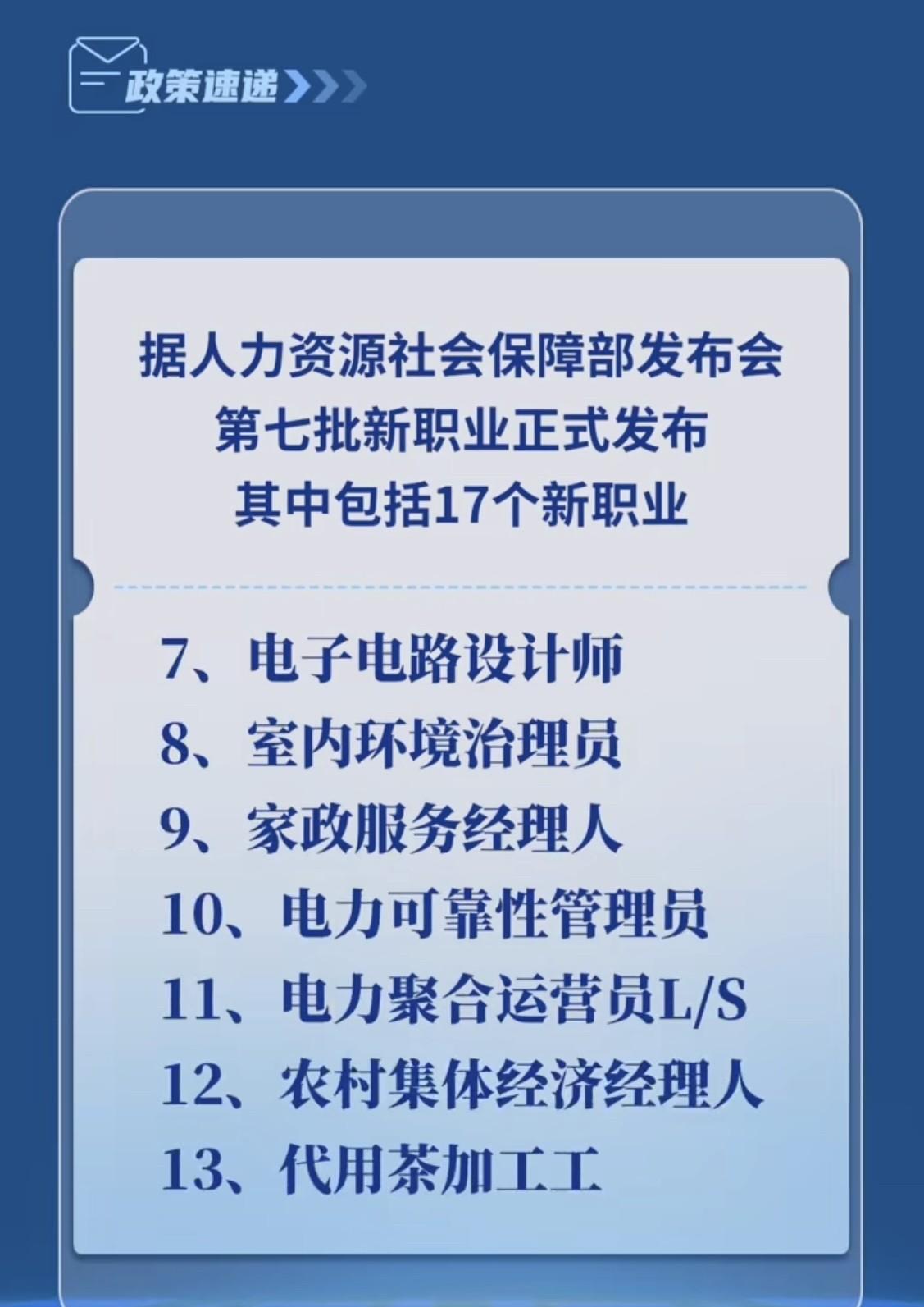 最新发布的17种职业,看看有没有适合自己娃的?除了太专业的看不太懂工作内容,有一些贴近生活的还是能看明白的。 比如养老服务师,与传统的养老护工不同,养老服务师是全方面的照顾老人,包括基础护理、心理疏导等。 装修管家,不用自己的管装修的事,这个岗位全包了,前期房屋的设计沟通、装修落地、成本控制等。 看了这17种岗位,你更愿意了解哪一个呢?#职业排行# #中国职业排行榜# #中国职业排行# #越老越吃香职业# #护理职业# #新型养老职业# #保姆级职业介绍#