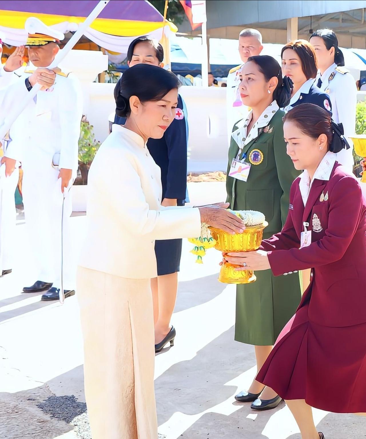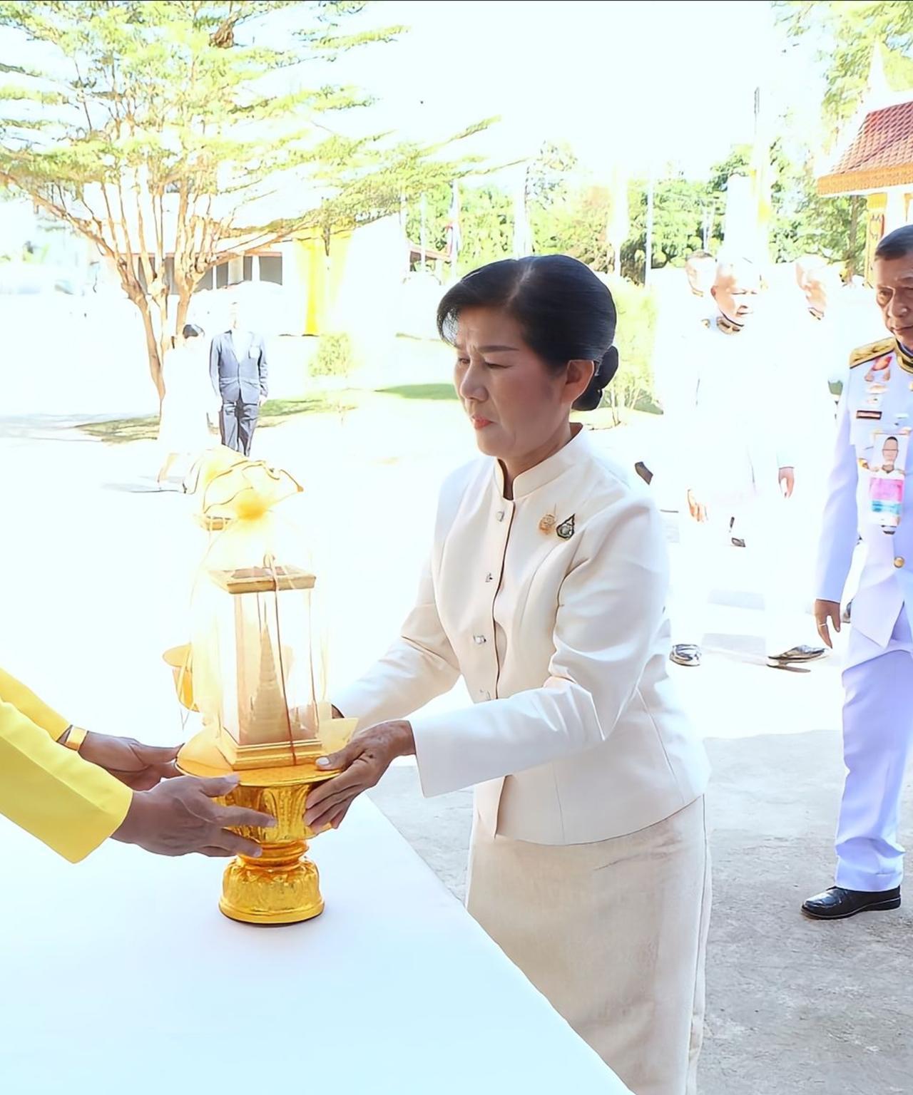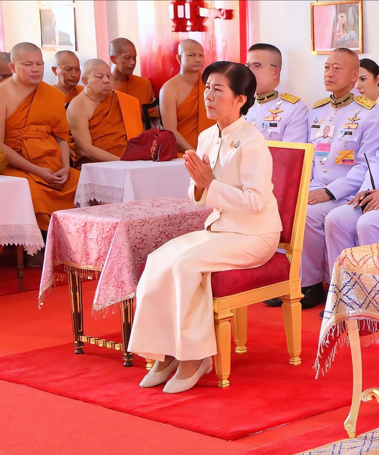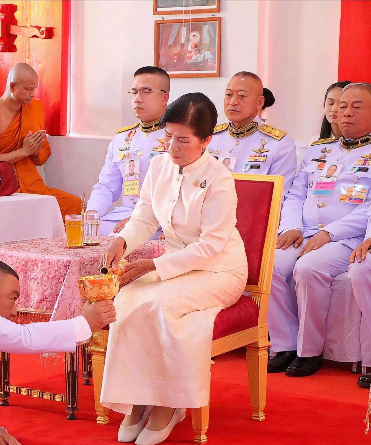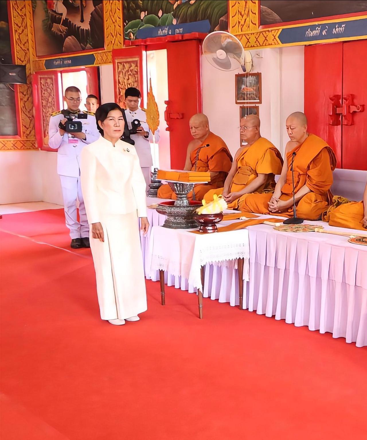 诗妮娜在德国照顾提帮功,皇家公务交给母亲 2024年11月15日上午10时,国王陛下盛情邀请诗妮娜母亲担任其代表,前往南部省Sutharam寺。诗妮娜母亲不负所托,向寺院捐赠卡蒂娜,还为寺院慷慨提供资金。