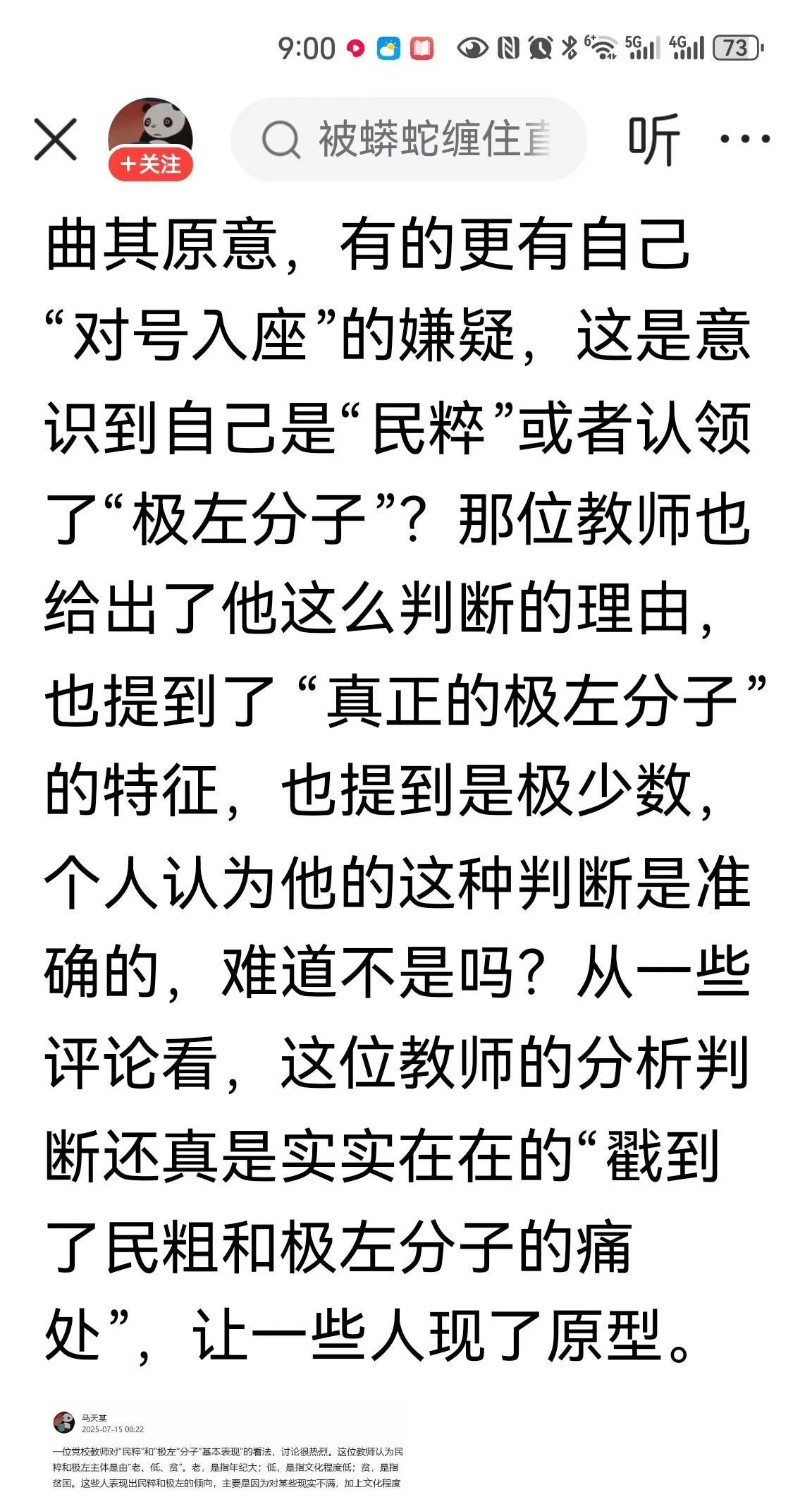 网上马XX的小作文,高度评价“党校教师”关于民粹与极左分子关联的论断,认可他们的基本特征: 一,年龄大 二,文化程度低 三,生活状况差 而极左分子是极少数,并给出了现象级极左的典型如《昆仑策》等等。 可见马XX与党校教师是英雄所见略同啊。 关于民粹与极左的确有重合之处,但民粹与极左最大的不同,是对社会国家民族的破坏力,后者更甚。 至于那3个标签,则让人忍俊不禁,年纪大这一条就说反了。相反,这个群体年轻人居多而且不断增多中,他们是左派居多但不承认自己是左派,或者根本不认可左右的存在。同时,他们是受过高等教育的居多,相反,低学历者鲜见。因为,他们不信任何洗脑之类,有独立思考的能力,更有明辨是非的能力…… 最后一个标签,生活状况差,有点靠谱。这帮年轻人不支持卖国求荣,更痛恨贪污腐败,然而自己苦读多年却面临各种挫败,因此,他们才是民粹的中坚力量!