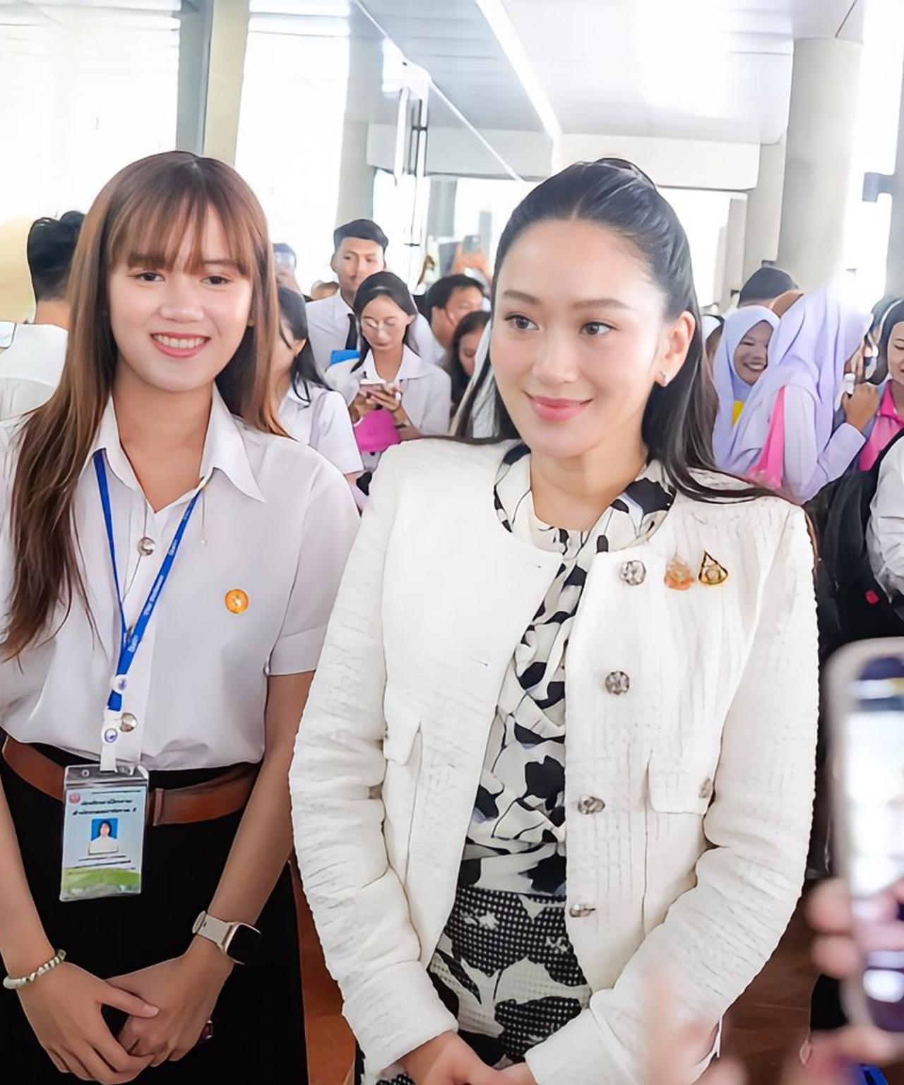 今日份佩通坦穿搭:一袭白色小香风外套好仙 2025年7月23日,泰国总理佩通坦前往议会大厦,跟进众议院会议、听取议员意见,还以文化部长身份欢迎学生,并与参观的学生合影。