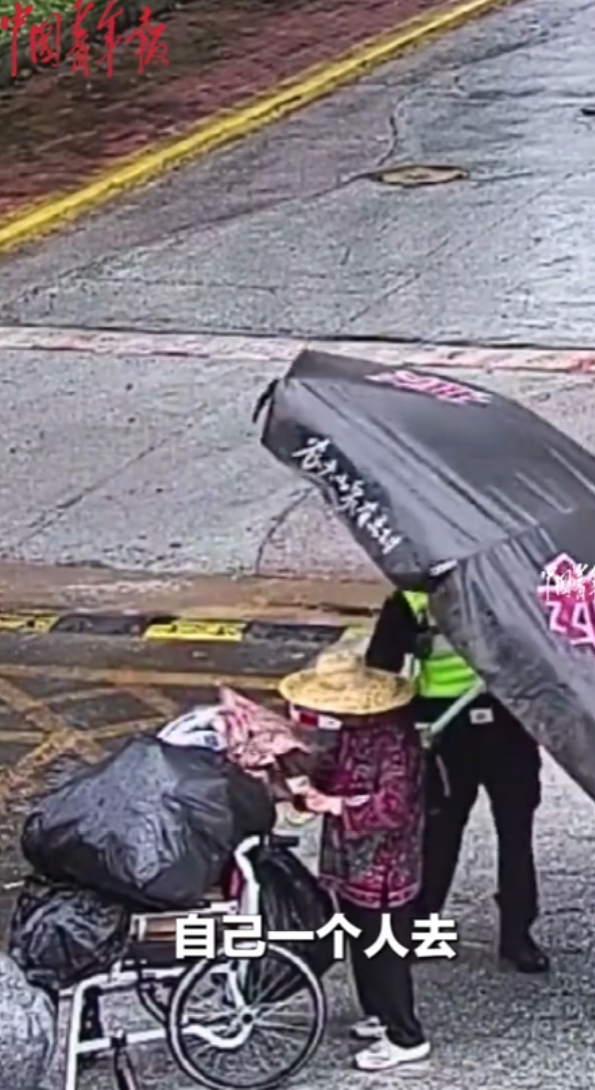 “太有人情味了!”近日,广东珠海,两名交警巡逻时,遇到一位用轮椅驮废品去卖的老奶奶,于是急忙下车帮忙。不料,天空忽然下起大雨,交警就带着老人躲雨,附近商店老板看到这一幕,好心送来遮阳伞。网友:好心人的爱心接力。