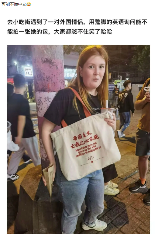 有可能她不在意包上印的什么,也有可能她是美共,或者只是一个有思想的人