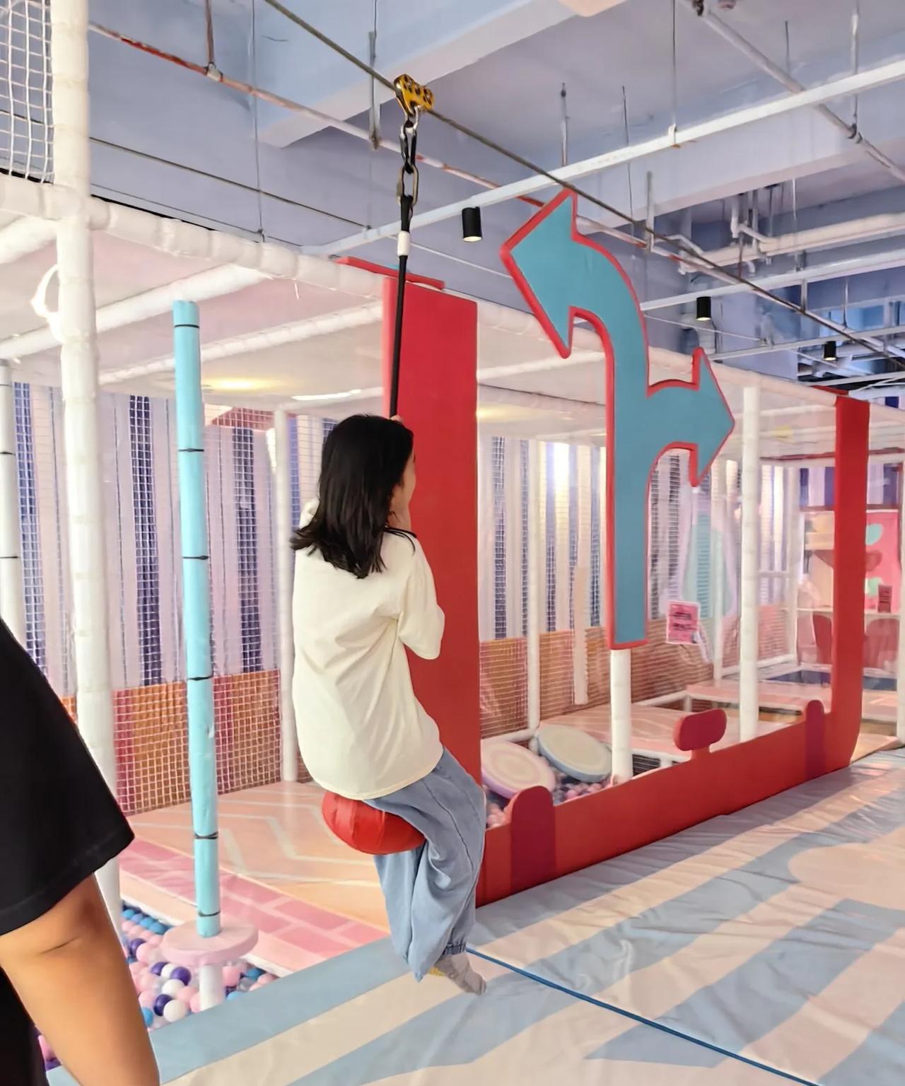 这个游乐场去年我带女儿来玩过,今年又带女儿来这里玩了,真好 99块进来玩,很大,有滑索,有蹦床,滑滑梯,积木,旋转木马,反正场地宽,在里面也不无聊,女儿喜欢玩滑索,这会儿一直排队玩滑索 现在又来玩积木,堆积木,码小屋。来这就是遛娃,只要娃开心就好了。 没玩多久,女儿想回去了。我说继续玩,交了钱了要玩久点,不然不划算了