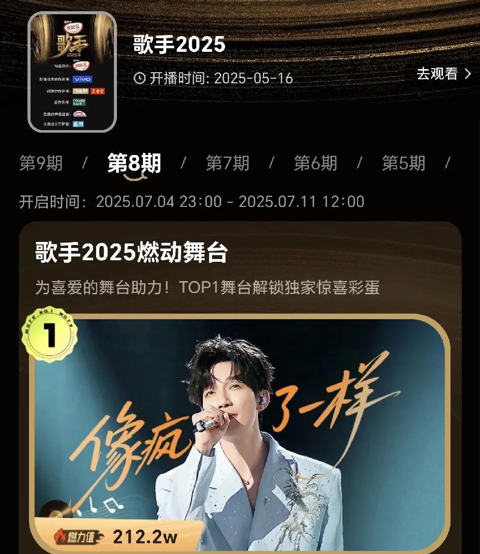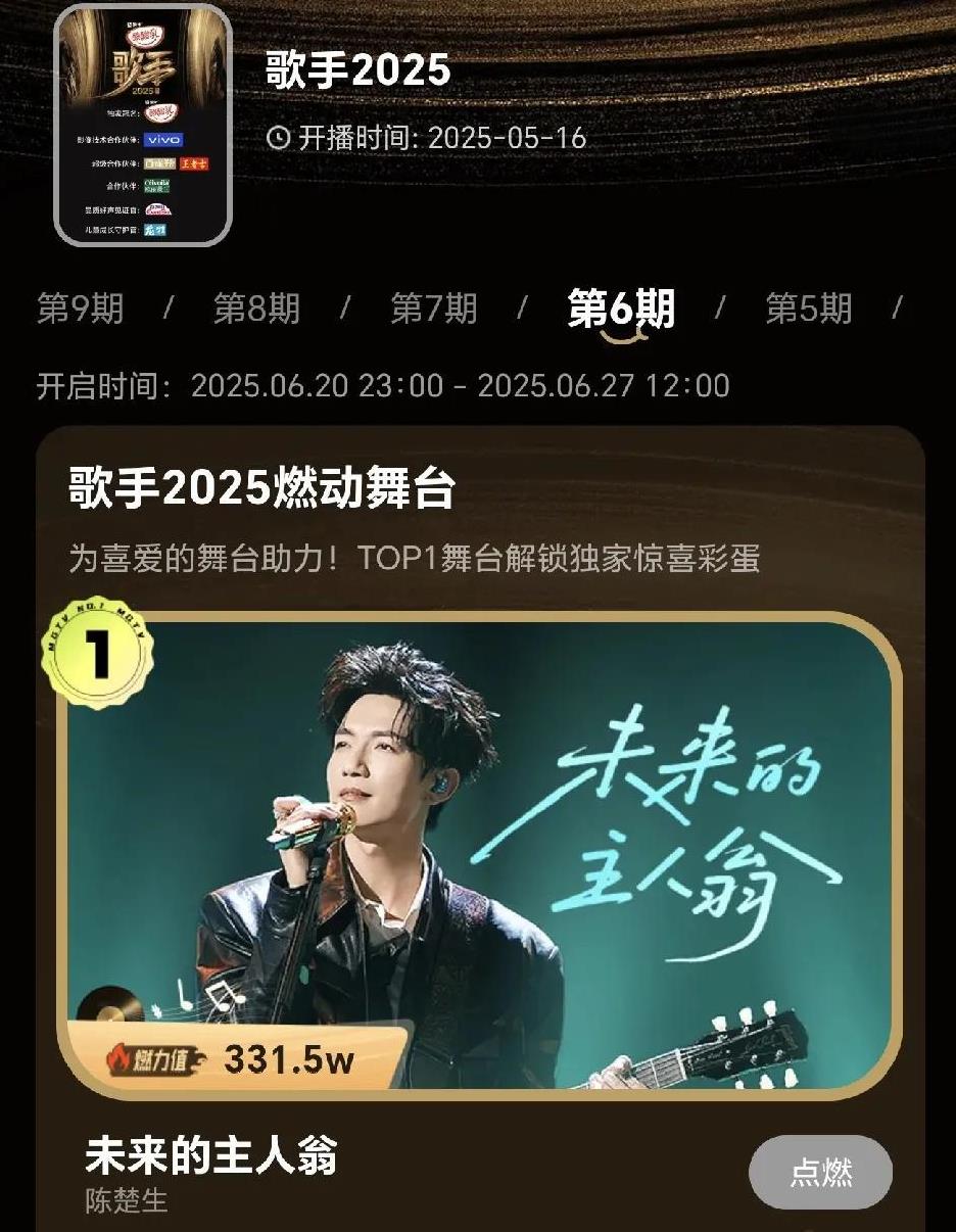 陈楚生在《歌手2025》有多少份量不知道,在歌迷心中的份量是真重。 这周末最后一