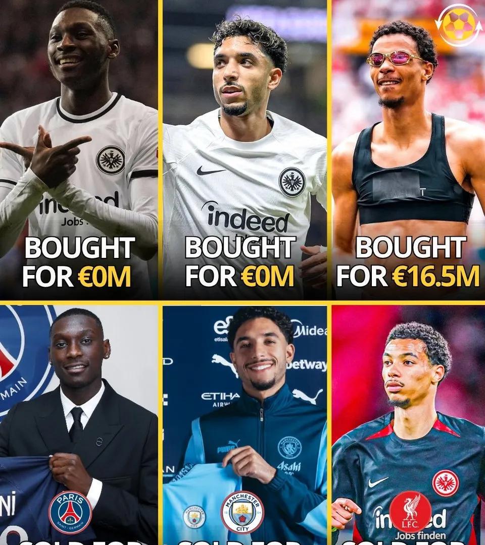 超级黑店、不堪重富 在埃基蒂克以总价9500万欧元加盟英超卫冕冠军利物浦之后,法兰克福近些年凭借着空手套白狼,成功套现3.9亿欧元,堪称当世第一黑店! 法兰克福引进埃基蒂克仅花费了1700万欧元,转手9500万欧元卖给利物浦,净赚7800万欧元,免签的马尔穆什、穆阿尼分别以8000万欧元和9500万欧元卖给曼城、大巴黎,2200万签下的约维奇以6300万卖给皇家马德里,1200万欧元买来的阿莱高价5000万欧元送到西汉姆! 不光如此,法兰克福阵中还有4位25岁以下的前锋,20岁的巴霍亚、800万买的、现在1700万欧元,23岁的克瑙夫、转会费500万欧元、现身价1500万欧元,20岁的瓦希、身价2200万欧元,25岁的布尔卡特、现身价3500万欧元,来年继续卖!