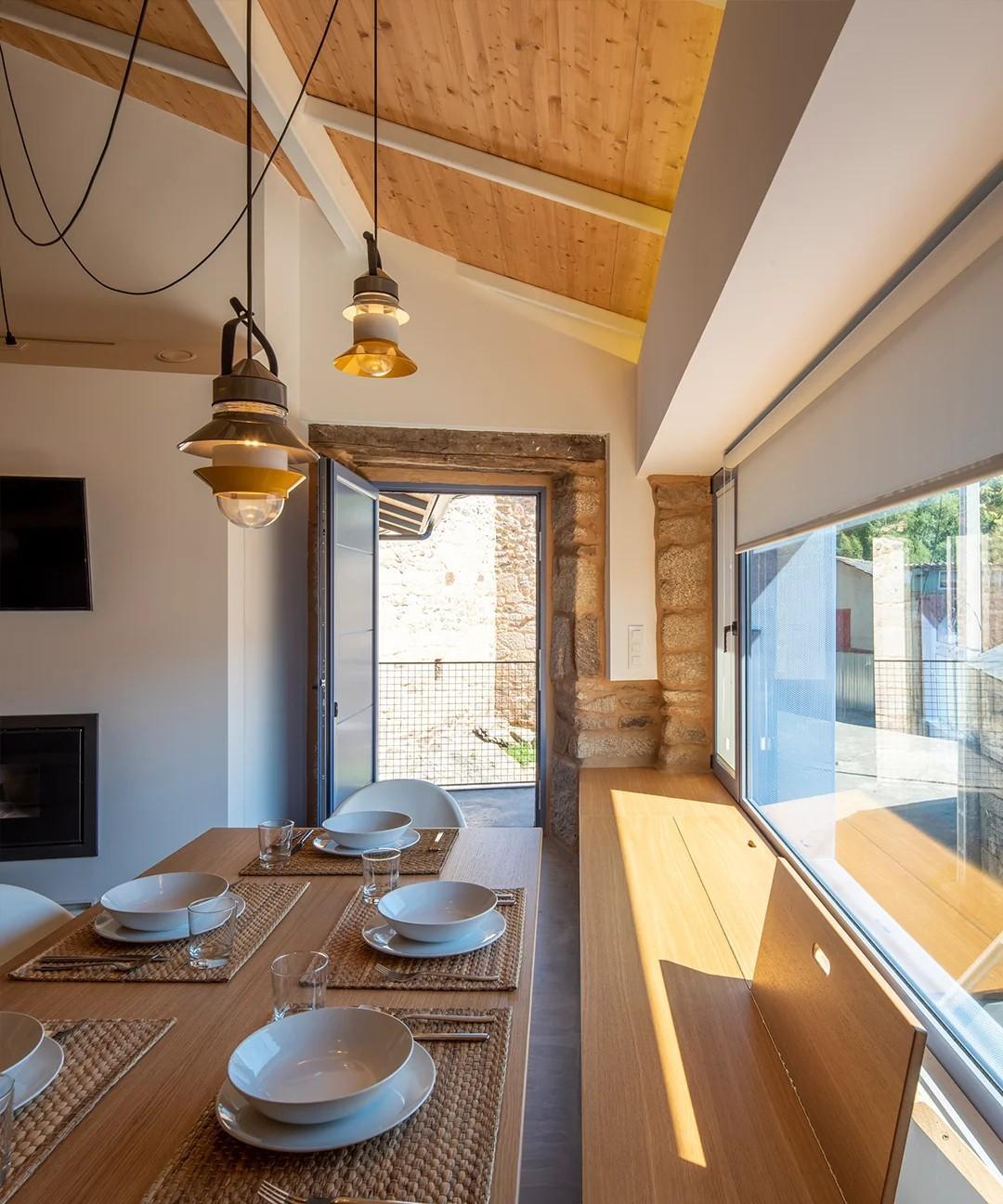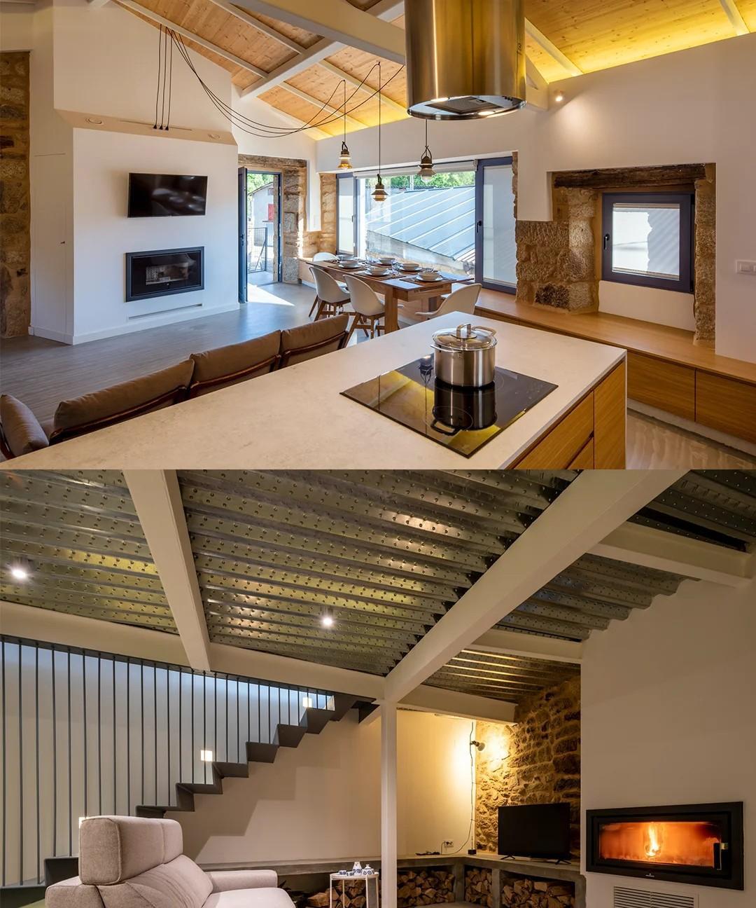原来乡村房子还可以这样改造啊? 这是一栋临马路的两层老宅,宅基地面积约149㎡,跟很多人一样,房主进城工作,过年过节偶尔回村居住,房子缝缝补补,破旧不堪,野草疯长。 喧嚣的城市容不下肉身,所有的繁华好像跟自己无关,兜兜转转后,才发现最初拥有的才是最好的,所以纷纷回家改造老屋,这样既住得舒适,又能亲近自然,享受宁静淳朴的乡村生活。 由于农村老宅改造的诸多限制,屋主并没有推倒重建,而是在原建筑的基础上,将原本各自独立的三个空间进行融合,中间的玻璃房依然与西边的房屋紧密结合,东侧则由一座木制屋顶人行天桥衔接,实现了直接连通。 完工后的老宅结构清晰,外墙的毛石装饰,延续了质朴风格,搭配黑钢玻璃墙,将现代轻奢风体现得淋漓尽致。 内部的客餐厅、厨房、卧室和卫生间,在装饰风格和材料选择上,与外观形成呼应,颜值高,温馨感十足。 另外,原有的草地也改造成停车场,你喜欢这样改造的农家吗?