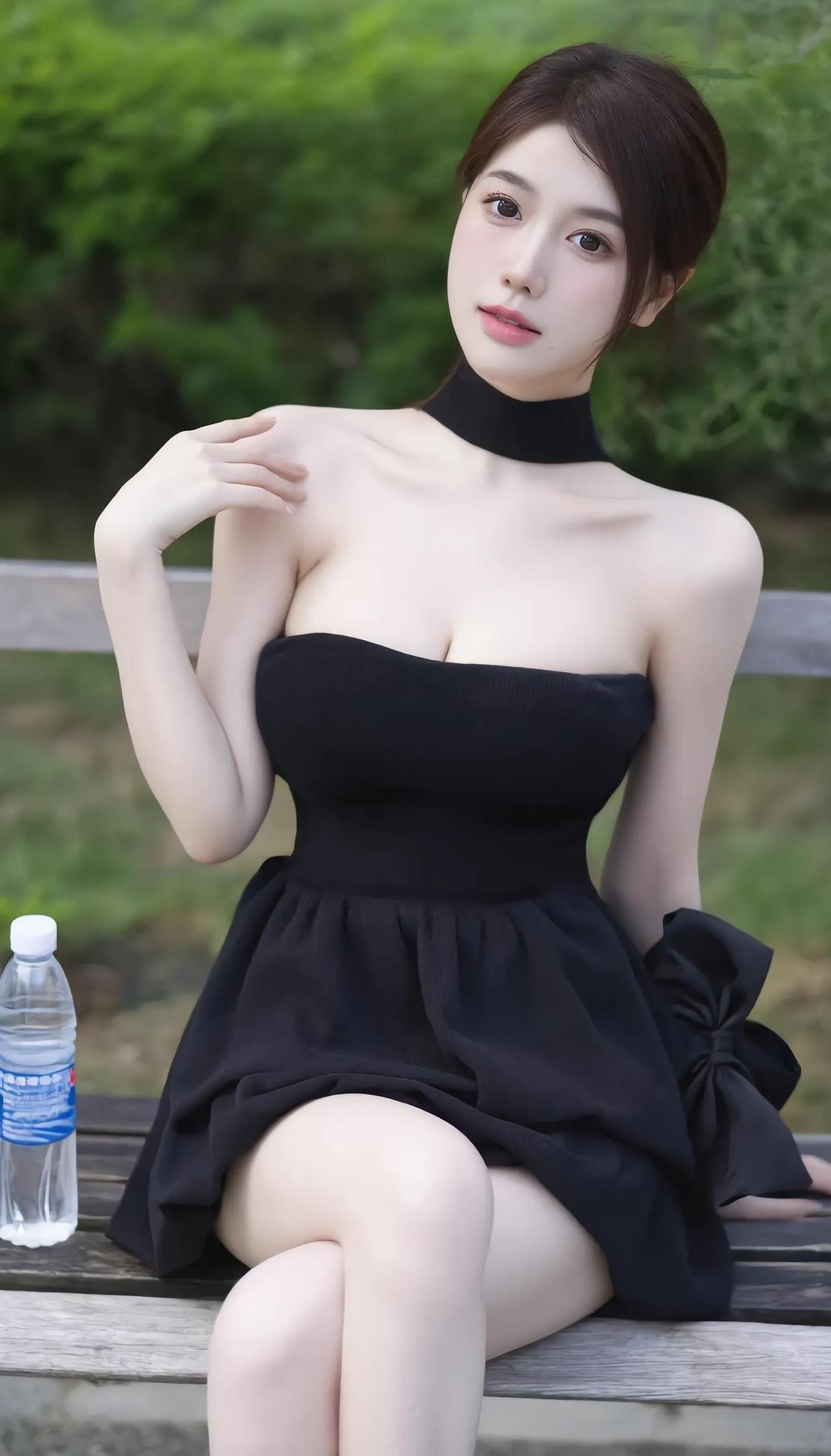 夏日黑裙少女,绿意盎然背景,清新自然气息。 #连衣裙怎么穿更时髦# #温柔黑裙少女# #黑裙美女#