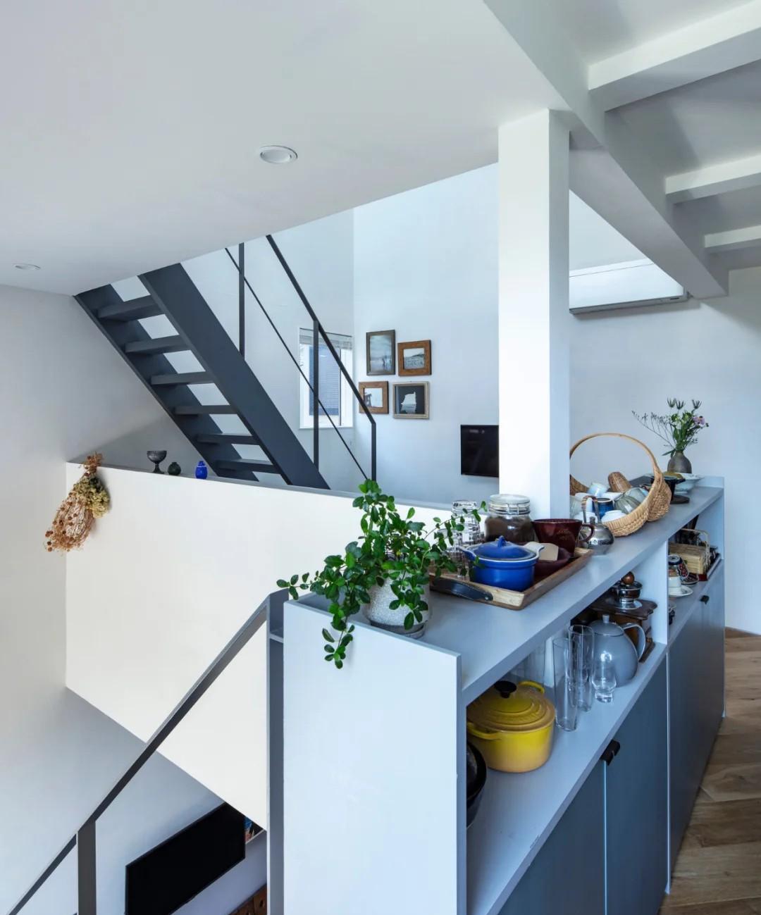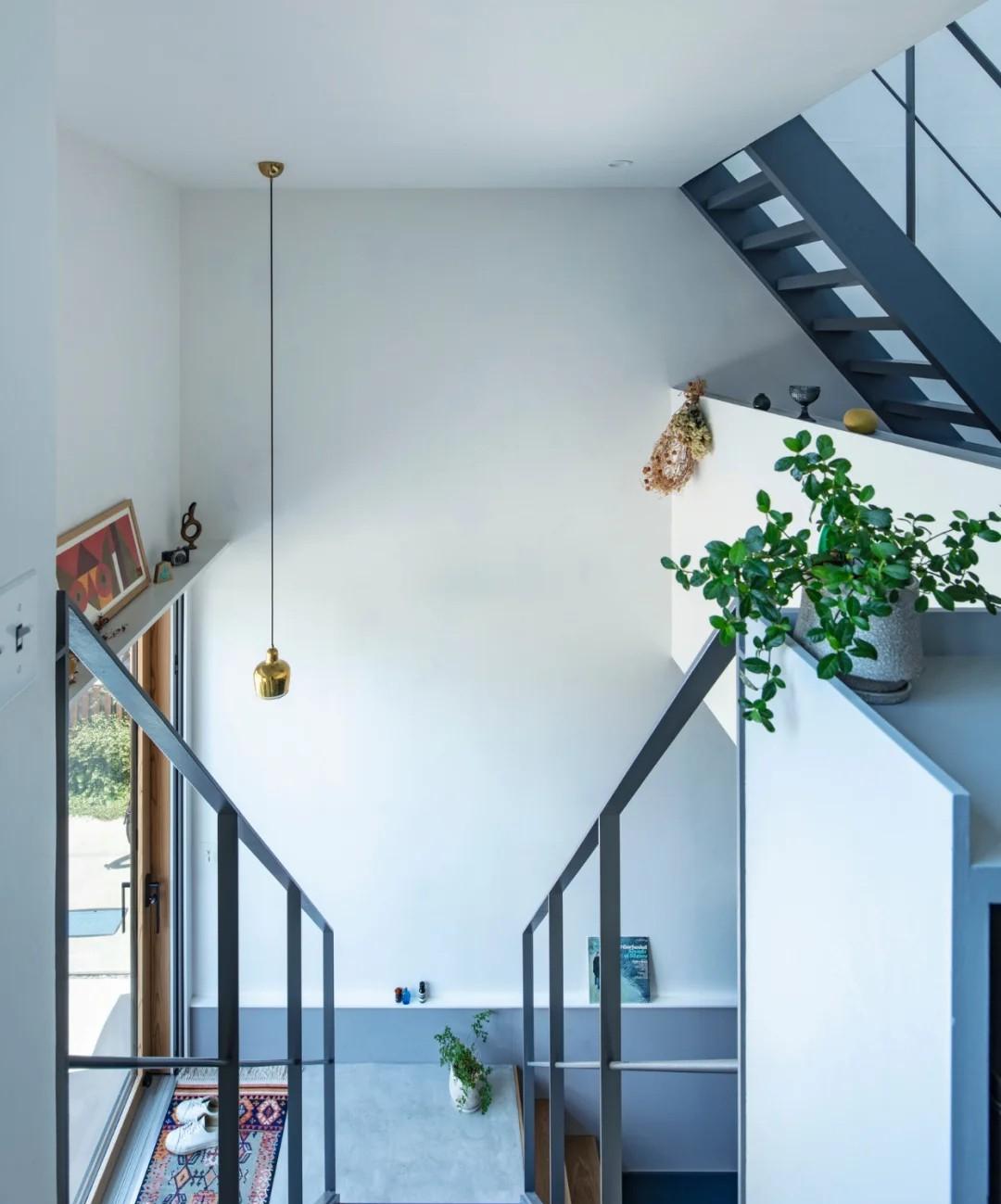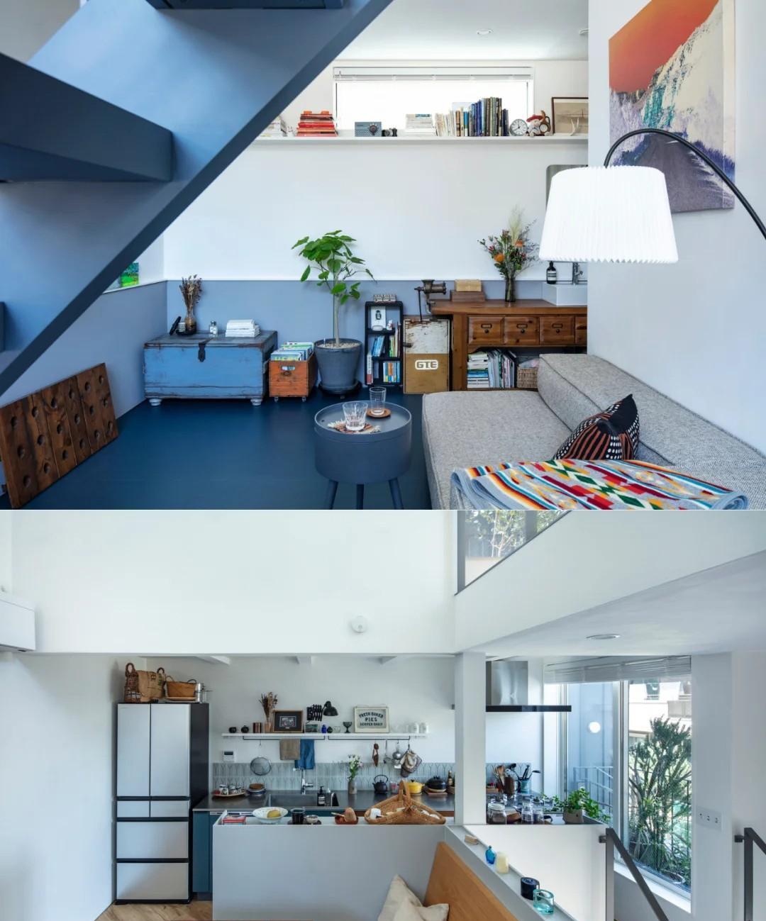 日本人真会玩,仅27㎡的极小宅,却住出豪宅感。 房子位于东京密集住宅区,屋主是一对90后夫妇,在狭小的空间里,建造一栋属于自己的温馨小家。 考虑到宅基地三面与邻居相连,为了室内采光,在建筑外观上,采用“纵向连贯”的设计手法,2楼和3楼都留出露台空间,这样既能抬头看天,又能低头有绿植相伴,太治愈了。 室内设计也很巧妙,1楼低于路面60公分,设置健身房和储物间,2楼则是客餐厨,3楼是卧室,通过钢制楼梯相连。 全屋采用现代简约风格,以海军蓝+白色为主基调,墙面和天花板使用石灰plaster漆,自动调节湿度,而客餐厅和卧室地面则铺设实木地板,温润、舒适还好打理。 你喜欢吗?