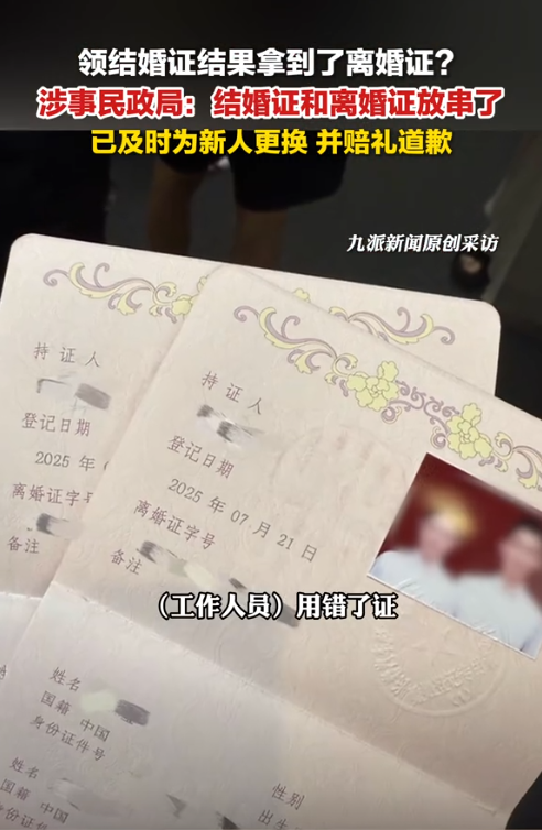 原来,她桌上那摞崭新的证件里,结婚证和离婚证混在一起了。不仔细看封面烫金字和烫银字的微小差别,根本分不清。要不是这对新人发现得及时,后面领证的新人,怕也要收到这份离谱的“见面礼”。
