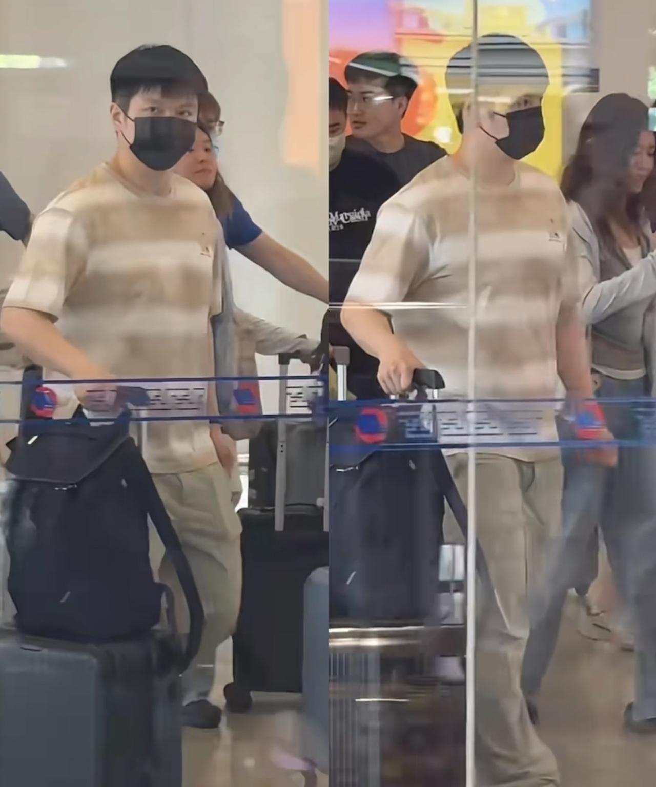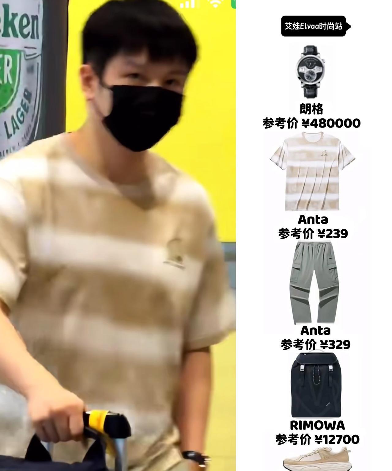 樊振东7.23机场造型,单手插兜好酷。樊振东7.23抵达厦门机场,条纹T恤搭配休