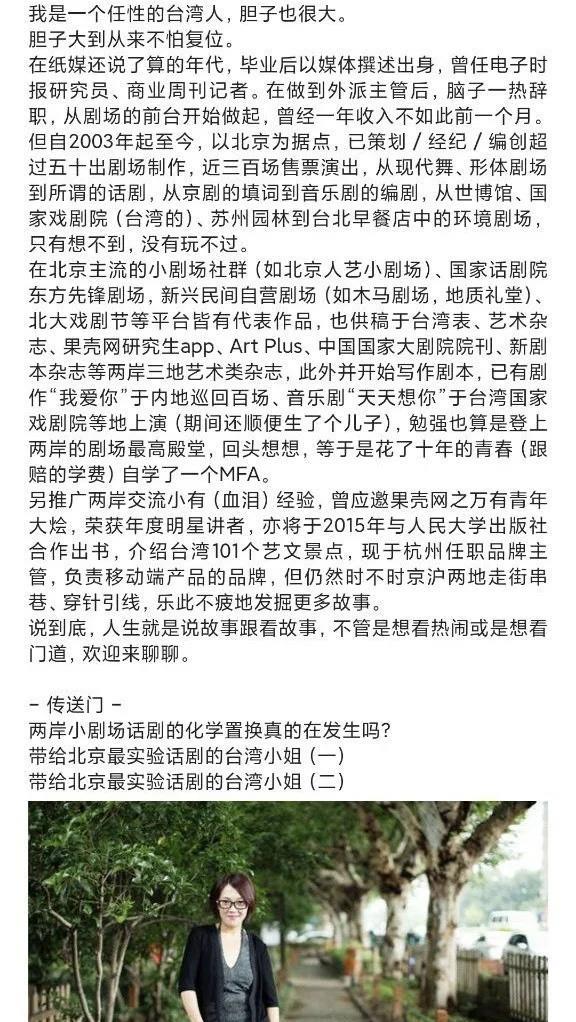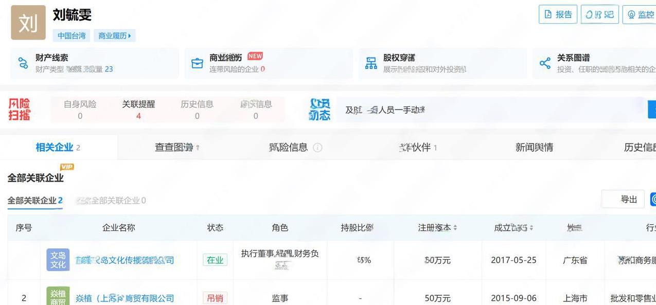罢免徐巧芯的罢团发言人“小令”刘毓雯被踢爆又是一个“双面人”,长年在大陆经商,回到台湾就自诩“反中”。此人不简单,是一位在多个领域都有所涉猎,她的职业生涯涵盖了媒体、戏剧、教育和文化等多个方面。曾是《商业周刊》等刊物的记者,在戏剧领域还有着一定的影响力,积极参与两岸文化交流活动,曾在北京、青岛等地推广中国台湾省小剧场作品,邀请了三十多个台湾省剧团到大陆展演,参与了以张雨生的歌曲为主题的音乐剧《天天想你》的创作,讲述了跨越两岸的爱情故事,还参与了《我爱你》等剧目的制作,这些作品在两岸文化交流中有影响力。在大陆东莞市注册登记经营的东莞文岛文化传播有限公司法定代表人就是刘毓雯。
