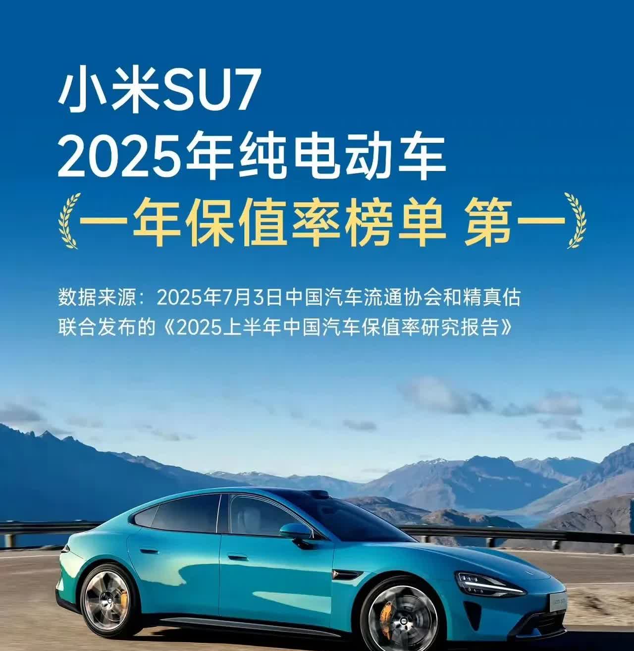 小米汽车保值率真牛! 小米汽车2025年纯电动车保值率第一名,之前是特斯拉保值