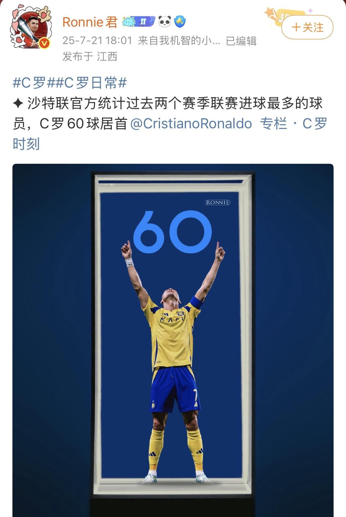 “沙特联官方统计过去两个赛季联赛进球最多的球员,C罗60球居首” 罗粉们最近都在