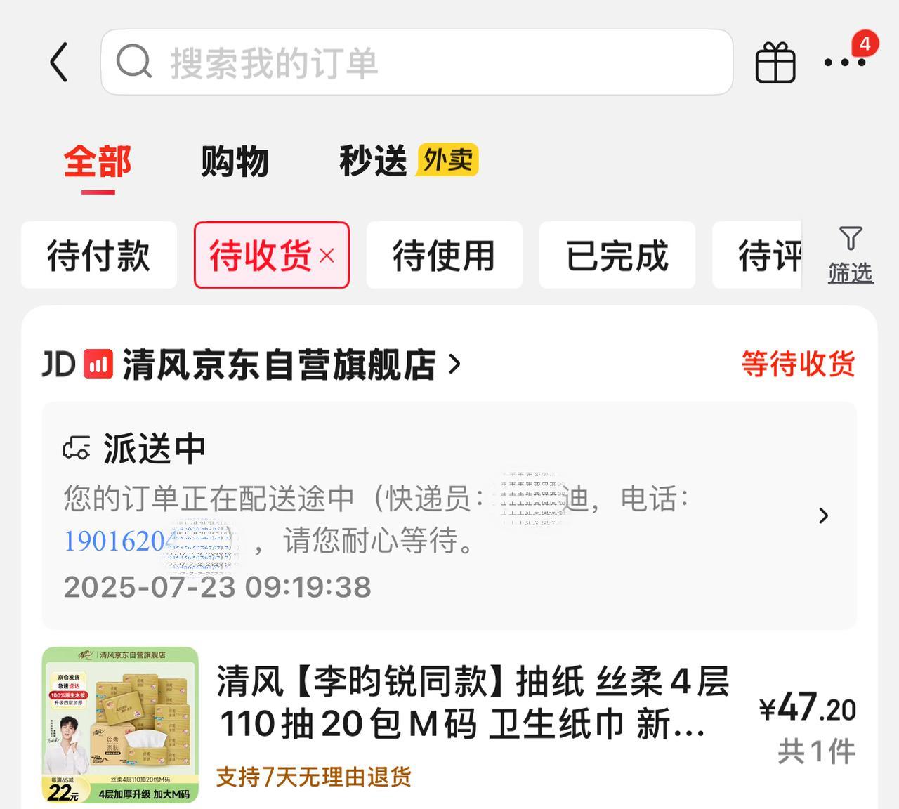 京东快递员所用的电话(见下图),腾讯手机管家提醒:“高风险电话!” 这谁还敢接啊?! 昨日,我在京东平台购买了一箱抽纸,提示是今天(23日)9点至15点送达。 然而到了晚上8点多,仍不见快递员的踪迹。于是我打电话询问,快递员称,“你的电话打不通!” 我说,不会吧,我24小时都不关手机,怎么打不通呢? 当时,快递员让我查看是否有一个“1901620xxxx”的来电,我查看手机后,发现确实有这个号码的来电记录。 但当时腾讯手机管家将其提醒为“高风险电话!” “你为什么使用这个电话号码?”我质问道。 快递员的话让我啼笑皆非!他说,“是被坏人标记的!” 顿时,我无语了!! 当下诈骗电话多如牛毛!一个京东快递员,使用的来电显示为“高风险电话”! 我想,不管是谁都不会接听这种电话的。