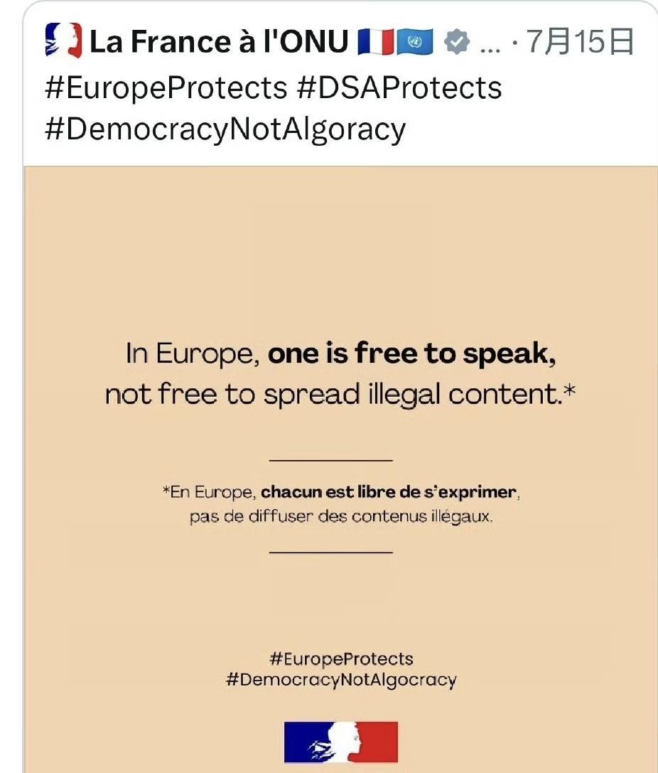 美国国务院批评欧洲没有言论自由,数千人因言论被判刑 事件起因是法国常驻联合国代表团发了一个帖子,说欧洲人们可以自由表达观点,随后美国国务院就转发帖子,并且亲切友好的慰问了欧洲。 现在看来特朗普政府整顿很有效啊,美国国务院已经学会了随手批评欧洲,这波属于主动找茬了,欧洲啥也没做,躺着被骂。