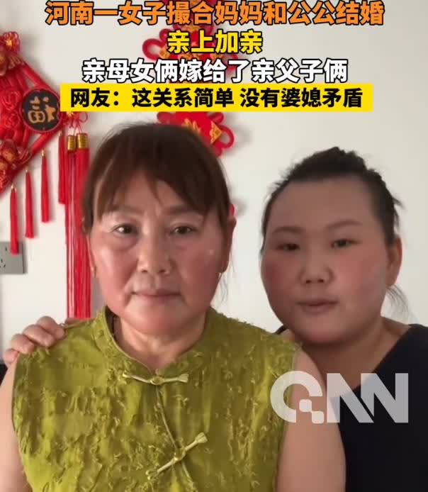 真是亲上加亲!河南周口,女子嫁个丈夫后,发现单身的公公人不错,而自己母亲也恰好是单身,就想着给两人撮合一下,没想到两人还真看对了眼,直接亲母女嫁给了亲父子俩,网友:婆媳矛盾不存在的! 女儿出嫁后发现自己公公一直一个人过日子,在丈夫出生不久的时候,婆婆就去世了,而公公性格也不差,干活又勤快,虽然岁数大点,身子骨倒是挺结实。左邻右舍也都夸这人厚道 而巧的是,这姑娘的妈妈也是单身,离婚后一个人过了不少年,日子平平淡淡,没想着再找,可心里多少也有点孤单 女儿和丈夫成了家,自己得照顾孩子,公公很多时候都要自己一个人打理家务。眼看着两个老人都单着,女儿心里有点过意不去 有天吃饭时女儿开了个玩笑,要不给我妈介绍个对象,结果一大家人你一言我一语,谁也没想到这“对象”就定在了自己家公公身上 原本就是随口一说,没想到公公还真有点动心,女儿的妈妈也觉得彼此都挺熟,都是一个圈子里的人,没什么见外的。俩老人聊着聊着,心思也就对上了。家里人其实都挺开明,没人反对,还都觉得挺好 有网友表示:这下亲家母真成了“亲家母”了 当然,有人可能会觉得别扭,但其实只要当事人愿意,外人也没什么好说的 换个角度看,幸福的家庭模式并没有标准答案,能让身边人过得自在、有人照顾,就是最实在的幸福