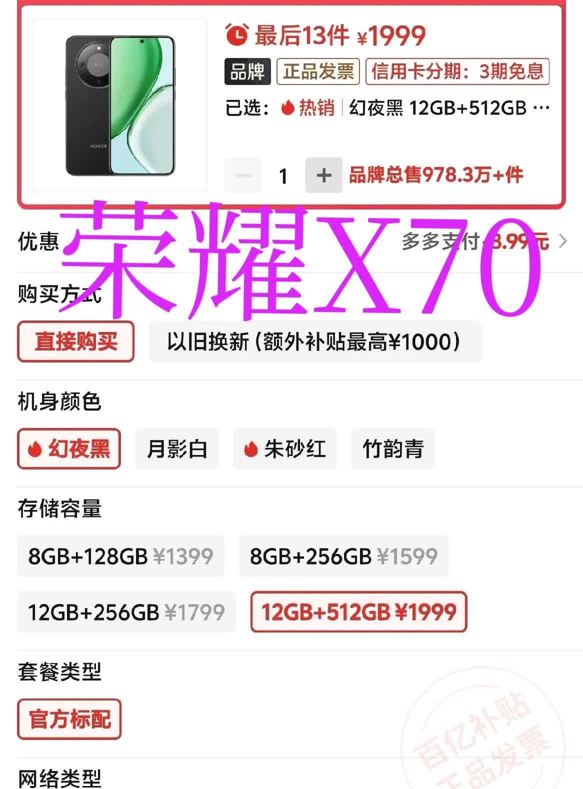 荣耀X70高配12+512售价1995, 除了大电池和抗砸,就没有一个能打的。 2000块钱能选的中高性能手机8g3,9300,9400e,电池6kmah,7000mah,三防你想要的都有。。 非要8300mah的电池吗。 为什么很多人对低配高价只字不提,还反呛…性能过剩,优化顶级,电池天花板,多么优秀