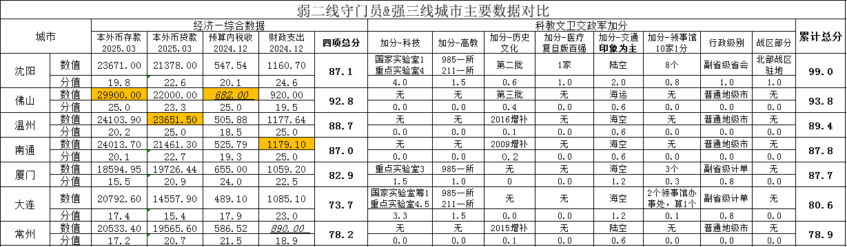 全国已有27座万亿GDP城市,东北地区何时破零将在今年终结悬念。2025年上半年产业经济发展相关数据已公布,大连近乎官宣年底站上万亿GDP,沈阳亦有望明年跟进。东北振兴,随着沈大等城市的加快复苏,似已看到希望。 振兴东北靠沈大,大连经济表现如何? 与哈尔滨、长春等城市相比,大连更称得上是当下的东北之光,甚至还超过了沈阳。 在弱二线城市和强三线城市的综合实力对比里,一般由高到低分别是沈阳>佛山>温州>南通>厦门>大连>常州。大连是较为特殊的一个,虽非省会城市,但却位列五大计划单列市之一,政策资源足够,城市底蕴深厚,除了经济数据一度落后多年,科教文卫并不输于诸多省会城市和万亿GDP城市。 即便经济数据不够漂亮,大连的经济配置也高出一档,四大行、进出口银行、国开行、厅级海关……全套机构齐备,大量的产业部门、外资机构的区域性拓展第一站,都会高看大连一眼。而在上世纪90年代,大连才是日韩企业在中国发展的重要聚集地。大连的营商环境也在北方城市里处于较高位置,2024年,大连公积金实缴职工人数达136.33万人,排名全国第23位。 在各大城市都面临实际利用外资金额大幅滑落的窘境时,大连在这一项上有着出乎意料的好成绩。2024年,大连全年实际利用外资超过18亿美元,同比增长高达90%,与传统的利用外资大户北上广深差距虽然巨大,但已经不输长三角、珠三角地区的多个万亿GDP城市。 官方定调,半场开香槟还是真的稳了? 都说东北城市,GDP是最弱的一项,但大连正在撕掉这个标签。 2025年,江苏徐州、浙江温州、辽宁大连3城均有望站上万亿GDP,如今大连已经官方定调,受益于工业升级、消费提振和重大项目支撑,大连上半年GDP超出预期,年底将稳稳超过万亿元。 在关注东北经济发展的民众眼里,大连徘徊太久,早该奋起努力,如今只是回到了应有的位置。 不过大连也并非没有隐忧,比如税收是大连的短板,同为五大计划单列市之一,大连GDP高于厦门,地方税收却低于厦门。民富方面,大连也不如厦门,更不如一众万亿GDP城市的先行者。 人口方面,东北城市普遍弱势,2024年大连常住人口仅增加0.5万人,在愈演愈烈的城市抢人大战里,大连的底气明显不足。 存贷款是城市真实经济活力、综合实力的重要指标之一,大连的金融存贷款孱弱、增长缓慢也持续了多年,如今都比不过唐山和潍坊。甚至有观点指出,大连的未来堪忧,因为人口和产业已近乎达到顶峰,后劲不足。因此,辽宁乃至东北地区的发展想要走得更远,得看沈阳都市圈的发动机效应。 即便是先一步进入了万亿GDP城市队列,大连仍无法取代沈阳的“东北第一城”位置。