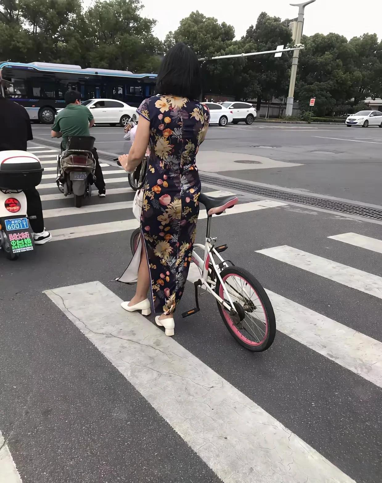 第一次见穿旗袍骑自行车的,这搭配说实话不伦不类,实在是不怎么好看,关键穿旗袍骑自行车也不方便,反正看着怪怪的。 友友们觉得呢?