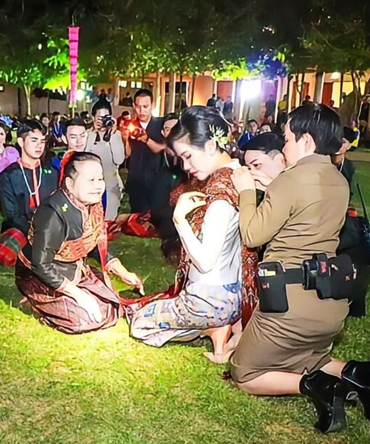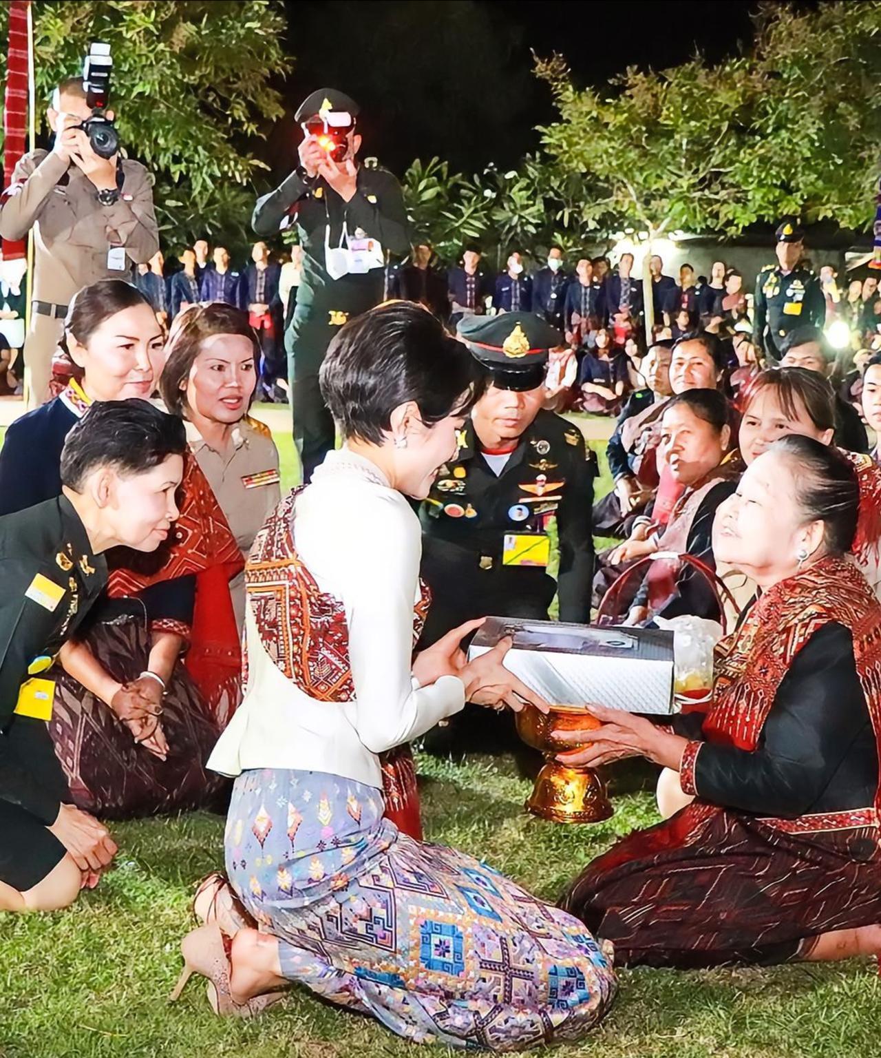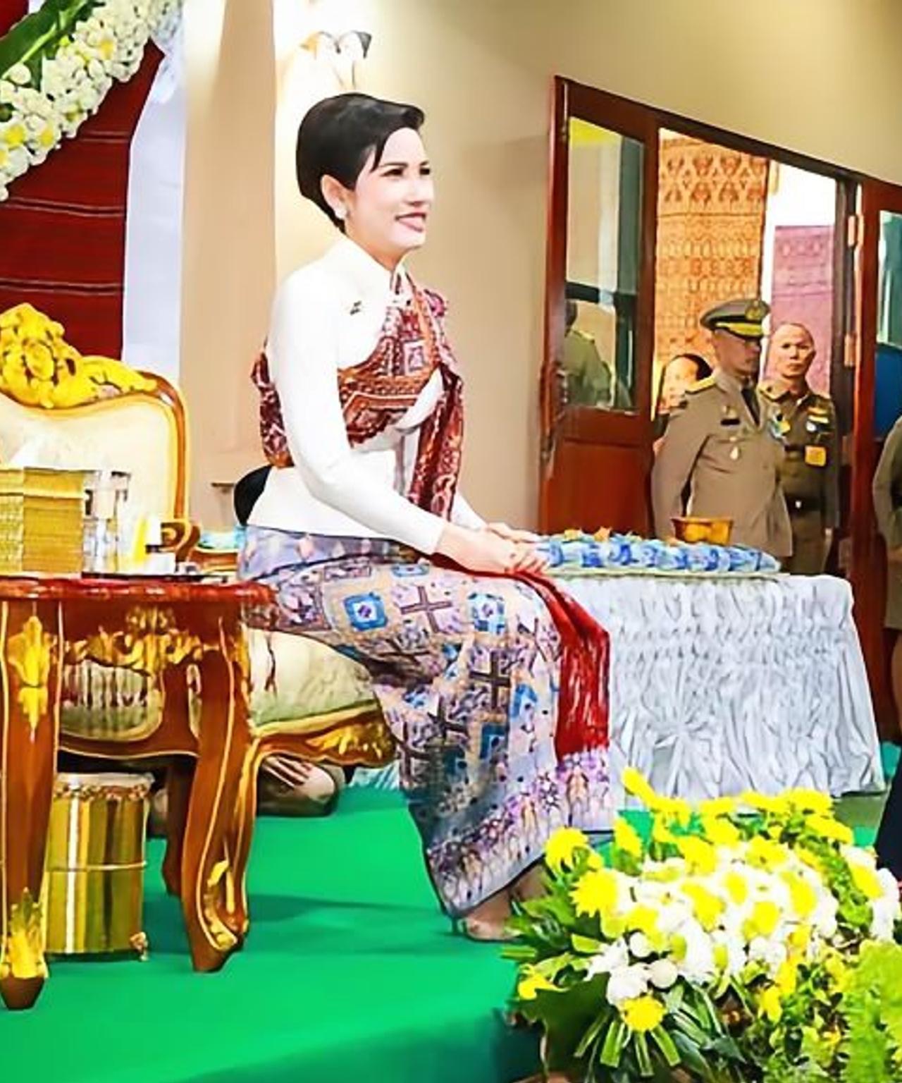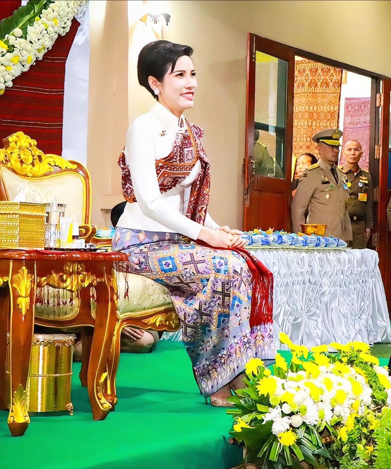 诗妮娜贵妃妩媚动人,大红唇造型有女人味 2020年11月28日,诗妮娜贵妃现身卡拉辛省出席皇家公务。她身着本土Praewa丝绸连衣裙,尽显优雅,还与卡拉辛人热情共舞。欢迎表演精彩纷呈,Kalasin舞蹈学院演员、音乐家,国家艺术家Mae Khamson等及村民纷纷参与其中。