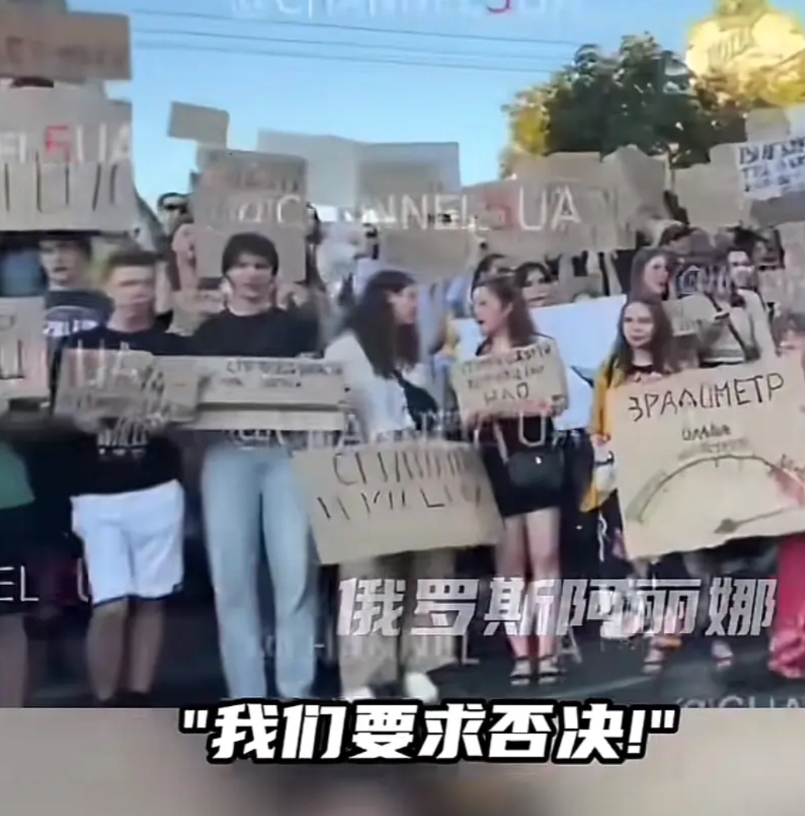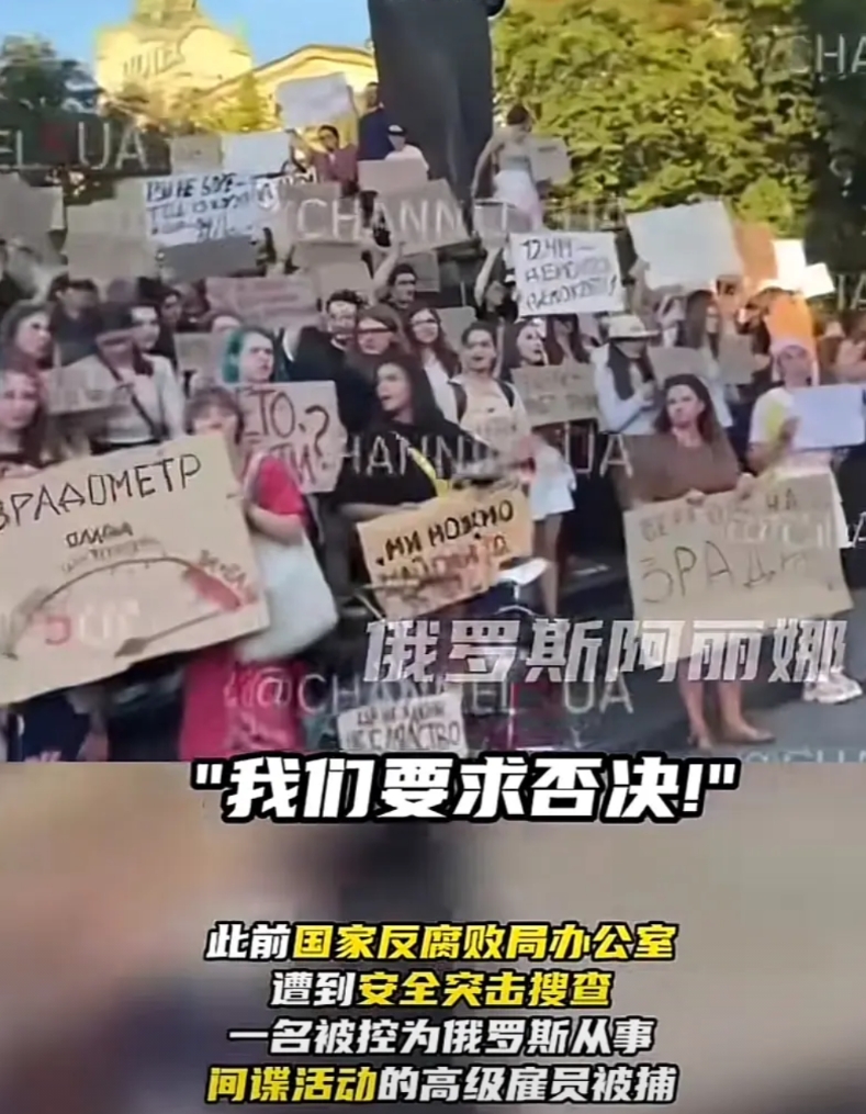 乌克兰人这回怎了,出奇的齐心,好多人不嫌累还举个牌子,大家齐喊口号,也没什么过激