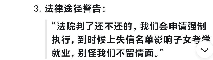 欠账还钱!—— 朱之文儿媳陈萌点燃网络热度! 最近,一名叫陈萌的女士突然在网上发表了一份声明,呼吁所有欠自己公公朱之文钱的人,不管欠了多久,尽快把欠账还清。 并且,她还表明,现在还账可以不付利息,否则,会走法律程序,连本带息进行偿还! 新闻早就报道过关于朱之文借出去的钱要不回来的有关报道。 由于朱之文为人憨厚,又是“草根明星”所以,造成了借钱人理直气壮,要账人碍于情面的尴尬局面。 这次,作为朱家儿媳的陈萌主动站出来,发表“讨债声明”,要给老朱家讨回公道,顿时,点起了网络的热度! 一、陈萌声明要点与策略意图 1. 核心主张 免息窗口期:明确当前还款不收取利息,降低村民抵触心理,给予缓冲时间。 逾期追责:若拖延还款,将要求“本金+利息”,并保留法律诉讼权利,强化约束力。 2. 角色转变意义 陈萌以教师身份介入(此前被描述为“低调有素养”),打破朱之文长期“老好人”形象,标志朱家债务处理从隐忍转向主动管理。此举可能试图以“外部身份”缓冲朱之文面对乡亲时的道德压力。 二、朱之文借款问题的历史积弊 1. 债务规模与成因 据公开报道,朱之文成名后(主要2012-2015年)借出款项近100万元,欠条装满一抽屉,多用于村民购车、盖房、娶亲等。 村民普遍存在“朱之文钱花不完,无需偿还”的心态,甚至有人放言:“想叫我们说好,得给全村买车发钱”。 2. 朱之文的困境 人情绑架:曾因拒绝借钱遭石块砸窗报复; 公益反遭诟病:自费50万修路被嫌“修太少”,捐款140万被质疑“作秀”; 家庭影响:村民长期围堵直播其生活,子女辍学啃老,家门被踹等事件频发。 三、陈萌介入的动因与潜在挑战 1. 为何是陈萌发声? 身份优势:作为“新朱家人”且非本村出身,更易跳出人情网络束缚; 朱家内部需求:朱之文性格软善,儿子朱小伟能力不足,需外部力量破局。 2. 现实阻力 村民抵触:长期将朱家视为“提款机”,可能集体消极应对; 执行难度:部分债务无规范借据,取证困难;诉讼成本高且易激化矛盾。 四、舆论分歧与乡土规则冲突** 支持方:认为陈萌“敢维权”值得肯定,欠债还钱是基本契约精神,朱家不应被道德绑架。 质疑方:批评朱家“不顾乡邻情面”,公众人物应包容村民困境,公开催收伤害乡土人情。 深层矛盾:事件折射中国乡村从“人情社会”向“契约社会”转型的阵痛—— “情分”与“本分”的界限亟待厘清。 五、法律途径的可行性与局限 1. 法律依据** - 借条或转账记录可作为有效证据,诉讼时效为3年(需证明期内催收过); - 若胜诉后仍不还款,可申请强制执行,列失信名单或追究拒执罪。 2. 实践障碍 - 证据缺失:口头借款、年代久远债务难举证; - 执行效果:村民可能无财产可执行,强执加剧对立; - 社会成本:诉讼将朱家推向村民对立面,背离朱之文“扎根乡土”的初心。 六、事件走向预判与启示 短期:村民或观望试探,少量还款;若陈萌坚持诉讼个别案例,可能产生威慑效应。 长期:根本矛盾在于乡村信用体系缺失。理想路径是 “协商分期” 或 “债务豁免换公益”(如以债抵村建项目),但需第三方协调。 “大衣哥困境”本质是乡土中国现代化进程的缩影:当个人成功遭遇集体索取,单纯忍让或强硬维权皆非最优解。陈萌的声明迈出了规则重构的第一步,但化解积怨仍需制度设计(如村级信贷合作社)与人情智慧的平衡。