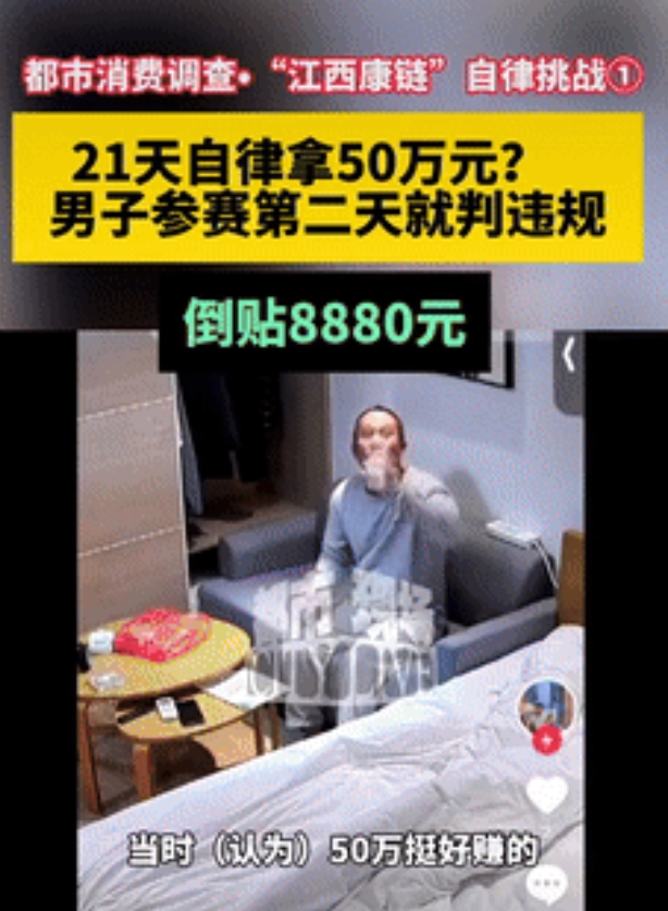 信息来源:都市现场 《自律挑战,21天自律拿50万元,男子参赛第二天就判违规。倒贴8880元》2025-7-21
