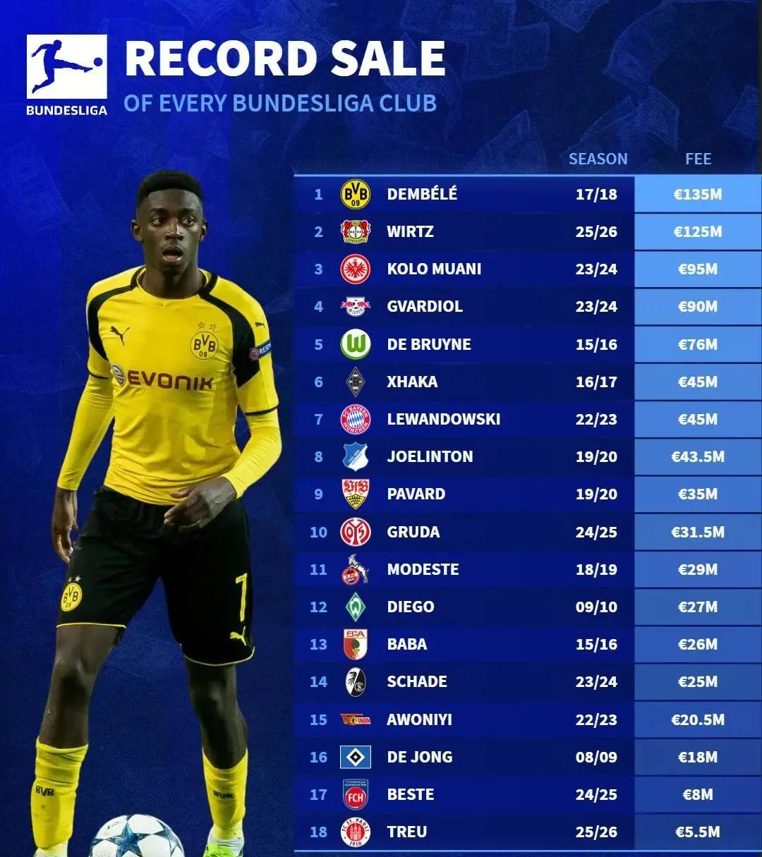 绿茵大数据! ★英超各队锋线三叉戟转会费排名! 其中曼联库尼亚+姆贝莫+霍伊伦德组合以2.27亿欧居首,曼城多库+马尔穆什+哈兰德组合1.95亿欧排名第2。 ★现役中锋德转身价排行榜! 哈兰德、姆巴佩居首,最近大热的伊萨克第三,埃基蒂克第六。 ★德甲各队队史最贵的球员转出交易! ★24/25赛季世界各国顶级联赛参与进球最多的球员! 哲凯赖什和萨拉赫均以47个参与进球跻身前三。 ★曼联队史最贵引援榜单! 其中刚刚官宣加盟的姆贝莫以7500万欧入榜排名第8。 ★当前五大联赛教练执教时间排名! 德甲海登海姆主帅弗兰克·施密特带队超17年居首,西蒙尼、瓜迪奥拉、阿尔特塔分列二三四位。 ★上季英超新援参与进球榜! 埃瓦尼尔森居首,切尔西新援德拉普在列。 ★24/25赛季薪资最高的足球运动员Top10! ★德甲此前身价最高和第4高的球员都去了利物浦!