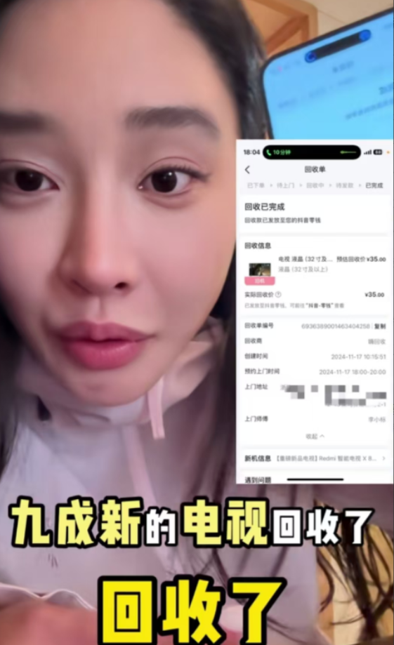 “强盗看了都甘拜下风!”吉林,一女子将九成新的75寸电视进行回收,当看到成交页面