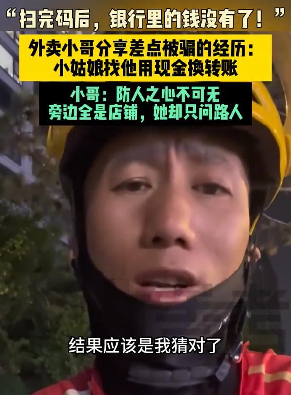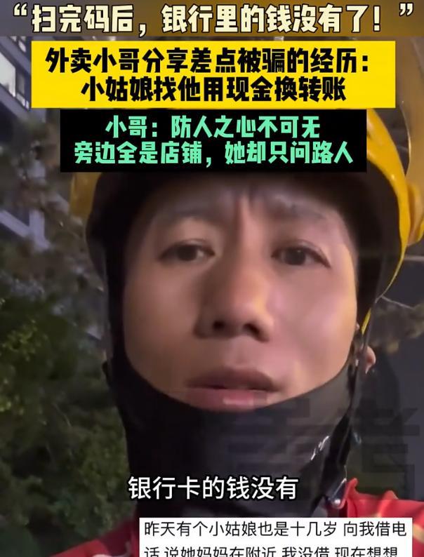 细思极恐!吉林长春,一位外卖小哥等单时被一名小女孩求助换零钱,小哥当场就觉得不对劲,并没有答应,观察了一会,发现女孩确实有不小的问题,小哥也是后怕不已,如果当时真帮忙扫码了,那可能银行里的钱就都没有了! 小哥介绍,当时自己正在一个商铺周边等单子,突然一个20岁出头的女生走过来,提出想要换两块钱零钱,也就是她拿出两块现金,再让外卖小哥扫给她 因为当时刚好没零钱,小哥就拒绝了,并建议她在周边商户问一下,可观察了一会发现,女生并没有这样做,反而专门找路人寻求帮助 小哥突然想起之前看到类似的视频,也是有些后怕,一旦真的扫了女生提供的二维码,那自己的手机可能就会中病毒,银行卡里的钱就不见了 有网友表示:她要扫你的二维码给你转钱 你打开收款的时候 先跳出来的是付款码 这时候她拍一张照就ok了 用个pos机或随便超市就能扫你的付款码了 好像是1000以内免密支付的 还有网友说:如果换成我,肯定就帮忙了,现在想想有些太单纯了 其实我觉得,不管是遇到什么求助,哪怕只是换零钱,也可以稍微多留意一下操作流程,尽量选择在正规商家或银行等有保障的地方进行 这样既帮到了别人,也能避免自己遇到不必要的麻烦。大家都习惯了互帮互助,但面对不熟悉的流程和方式时,保持一份谨慎,对自己和他人都是负责任的态度 生活里,好心肠没错,但一定要有基本的防范意识。不熟悉的人,不明来路的二维码、手机操作,一定得多留个心眼,哪怕多想三秒钟 #外卖小哥分享差点被骗经历#