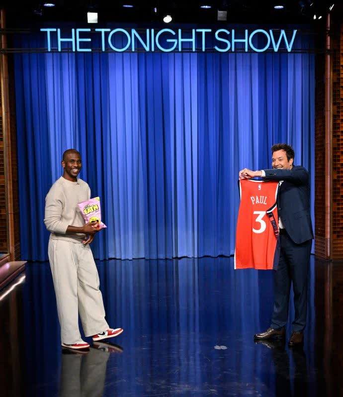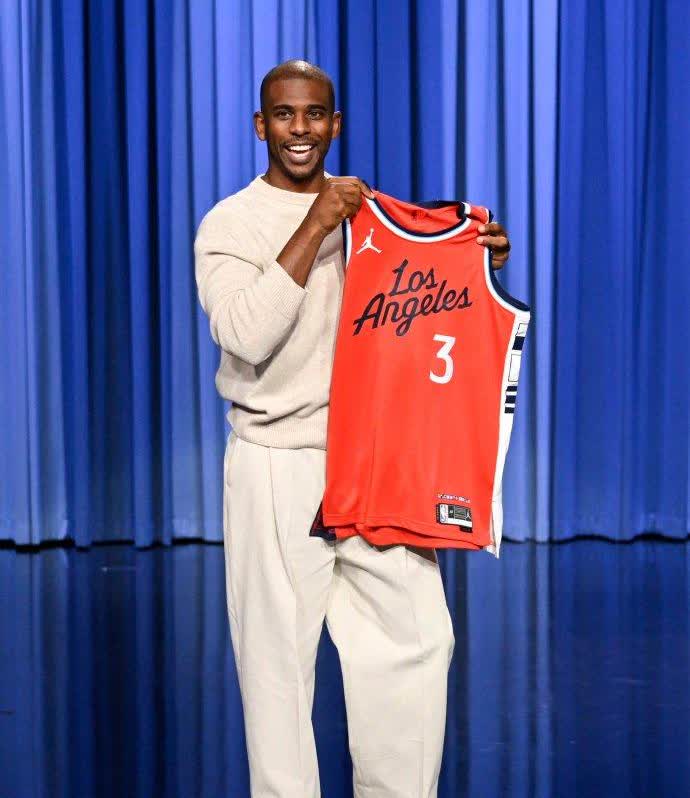 保罗参加吉米晚间脱口秀节目,获赠他最新的快船3号球衣,这个号码就非常熟悉了。