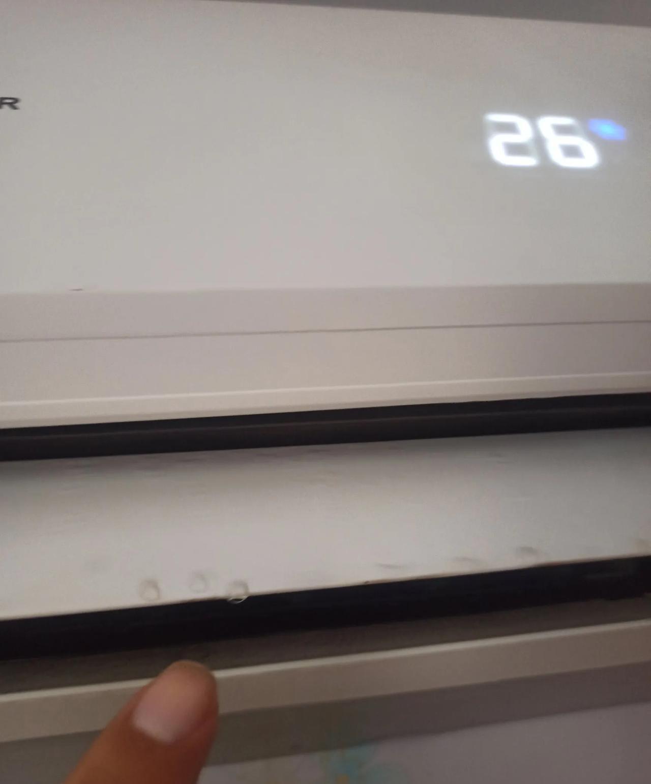 今天,是个阴雨天,外面28摄氏度,我点了空调。 没想到空调外面出现了水珠,不知道