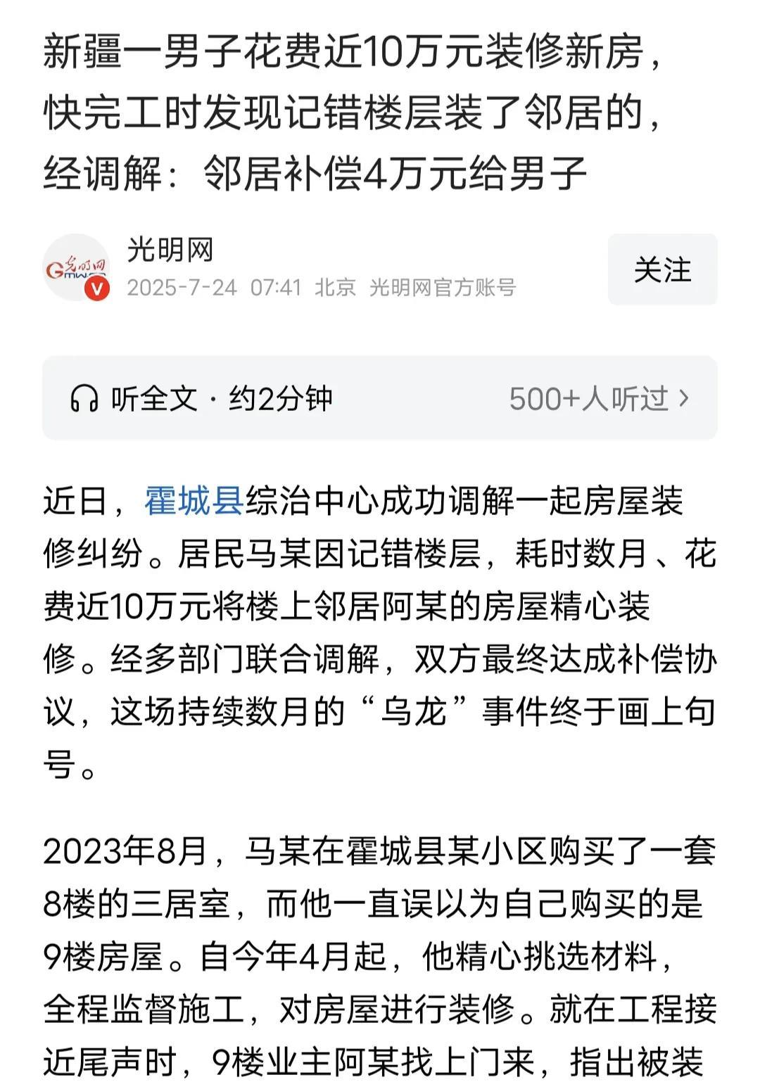 “小品现实上演!”新疆男子买了8楼的一套三居室,装修新房时,他却误把9楼的房子装