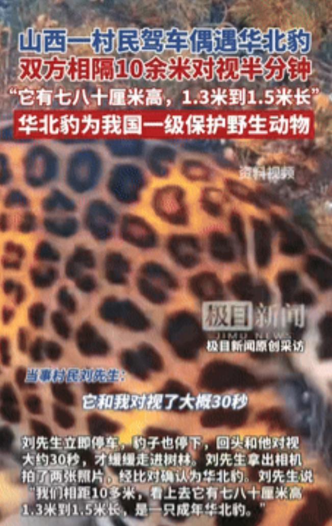 “胆子不一般的大!”山西沁源,一男子回家途中,偶遇一只华北豹,他立即将车子停下来