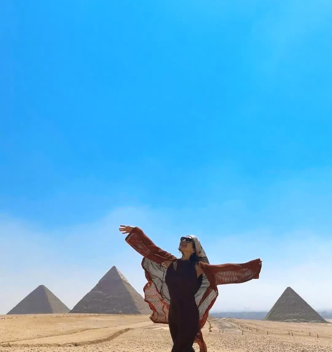 不愧是国际巨星,跑到埃及了都比埃及艳后还美丽,感觉胸都变大了,身材越来越完美了。