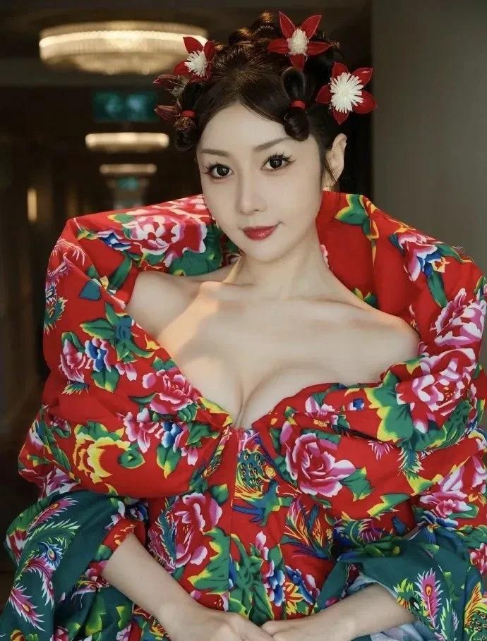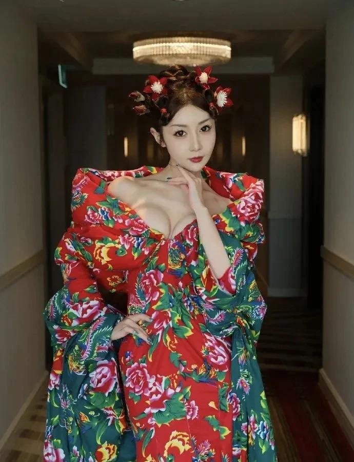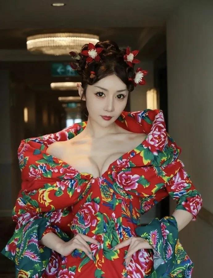 上淇这一身东北大花裙杀疯了!低领+夸张袖,身材凹凸到逆天,皮肤白得发光,随便一摆pose,性感直接溢出屏幕!