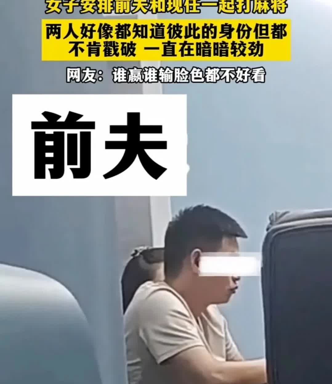 女子安排前夫和现任一起打麻将 两人好像都知道彼此的身份,但都不肯戳破,一直在暗
