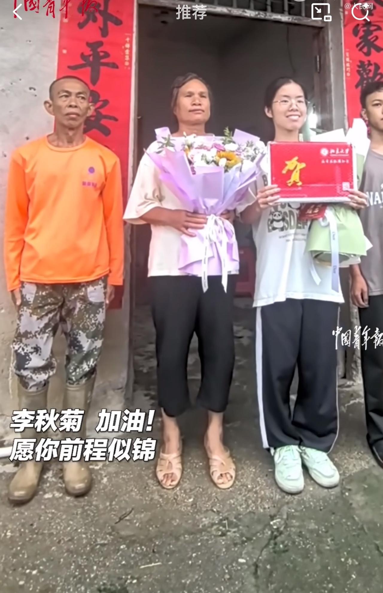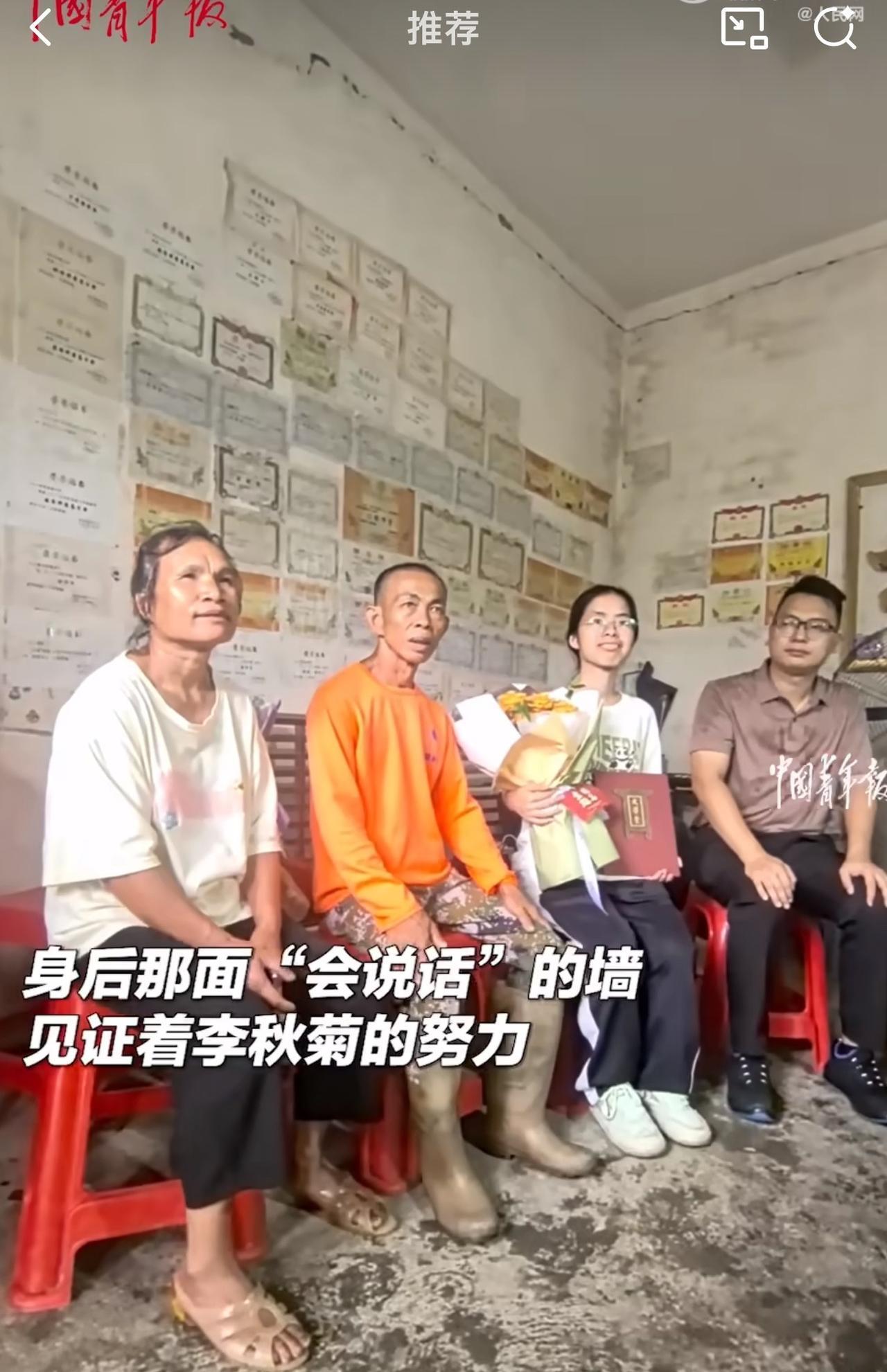 据悉,这位乡村女孩是全镇第一个考上北京大学的学生,父母一直鼓励她好好学习,而她也不负众望,家中满墙的奖状,考上北大回报父母。 此视频曝光之后,引发众多网友纷纷称赞道,“家徒四壁还能考上北京大学,真是太了不起了,祝福这位女孩前路顺风顺水,未来前程似锦!” 看到广西博白乡村女孩李秋菊考上北京大学的消息,周少不得不说真的太让人感慨了,真心替这位乡村女孩感到高兴。 她生长在并不优渥的环境中,却凭借自身努力和家人的鼓励支持,成为全镇首个考上北京大学的学生,这背后的付出与难度可想而知。 满墙奖状是她多年努力的见证,也是她对知识执着追求的勋章。她的成功,不仅打破了大家对乡村孩子教育资源不足就难以出人头地的刻板印象,也为无数乡村学子点亮了希望之光。 除此之外,这也让我们看到,教育公平在逐步实现,寒门学子也有改变命运的机会。 不过,有一说一,农村教育在基础设施和师资力量上仍需提升。周少真心希望未来能有更多资源向乡村倾斜,让更多孩子有实现梦想的可能。 对于这位乡村女孩成为全镇第一个考上北大的学生,大家怎么看呢?#寻美三湘# #长沙新朋友#
