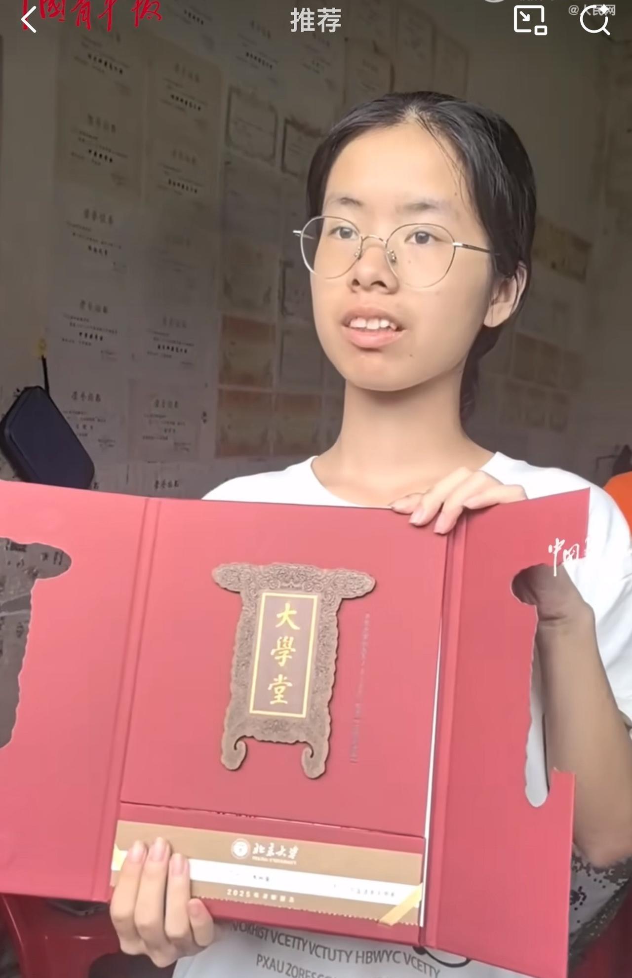 据悉,这位乡村女孩是全镇第一个考上北京大学的学生,父母一直鼓励她好好学习,而她也